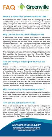 Thank you to the residents of the City of Greenville, elected officials, the City Manager’s Office, Recreation and Parks Commission Board Members, Recreation and Parks Department Staff, and stakeholders for your participation in interviews, workshops, and surveys. This feedback was critical in the creation of a master plan that will serve as a guide for the future of recreation and parks in the City of Greenville.