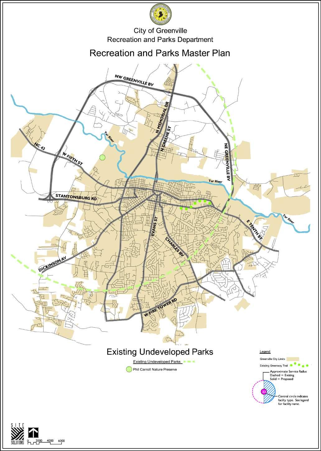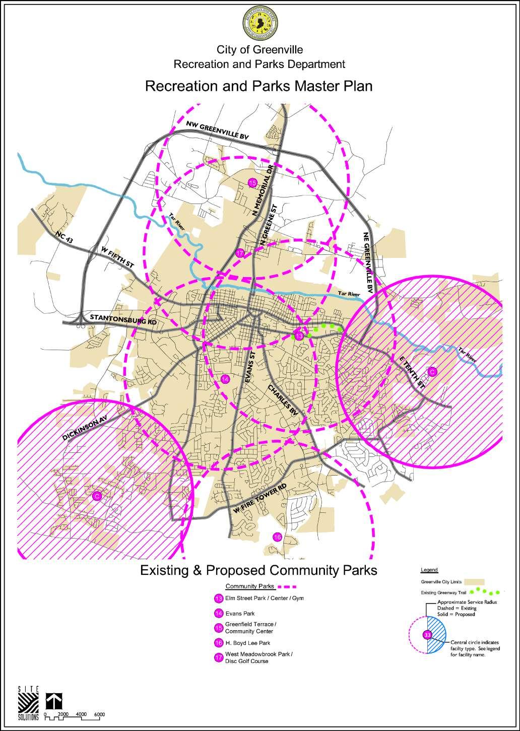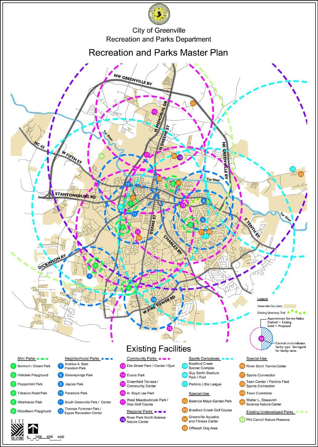 The City of Greenville’s Comprehensive Recreation and Parks Master Plan is based upon a review of the community’s character and growth, an analysis of the existing park system, the identification of user needs, the development of recreation standards, and an adherence to stated proposals and recommendations. The plan is intended to be “action-oriented”, designed to provide a framework from which the City’s Recreation and Parks Department can enhance their parks and recreation system.