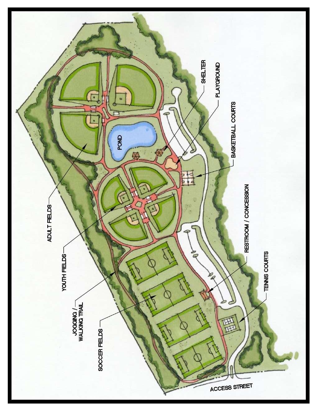 Sports complexes are a new recreational park type that focus on active recreation with particular emphasis on team sports (soccer, baseball, etc.). Typically, the sports complex is a large park (80 –100 acres) dedicated to league and tournament play. Often these events provide opportunity for economic development. Currently the City has three facilities that function as mini sport complexes (Bradford Creek Soccer Complex, Guy Smith Park, and Perkins Baseball Complex). Unfortunately, all of these facilities are extremely small by today’s standards for sports complexes.