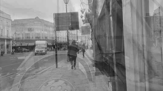 I wanted to capture the atmosphere, feel and presence within a place, using multiple videos overlaying each other helped me to do this, each video is different and shows the different people and ways of moving through the place.