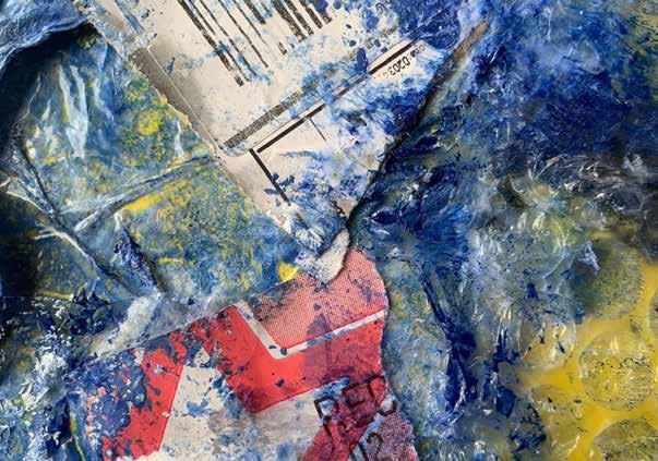 I have created visual outcomes that have translated the problems the news and scientists are discussing. Using discarded materials as means of translating these issues into visual art that depicts all my research findings and explores the use of material physicality to merge into a visual illustrative painting that explores how plastic waste is creating a toxic and harmful environment to marine life and the impacts of man-made material to the natural environment. My intention is to construct outcomes that aim for people who might ask me questions about this and interact with my work, to discuss with me the issues of climate change.