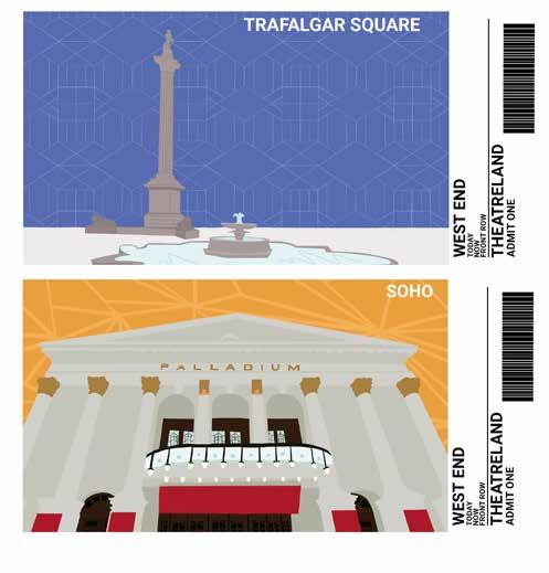 The West End has always fascinated me as a place of performance being around every corner; every time you visit there is something new to explore. The theatres, the street art and entertainers, but also how the place is brought to life by the people who visit it. Exploring how places are documented and how items can hold memories, as well as the atmosphere of an event, I found my collection of tickets from the shows I have seen over 10 years, inspiring my solution. The tickets I designed are an invitation to explore the West End through a performance lens, to seek out the hidden details that you usually miss and find excitement for the place again.