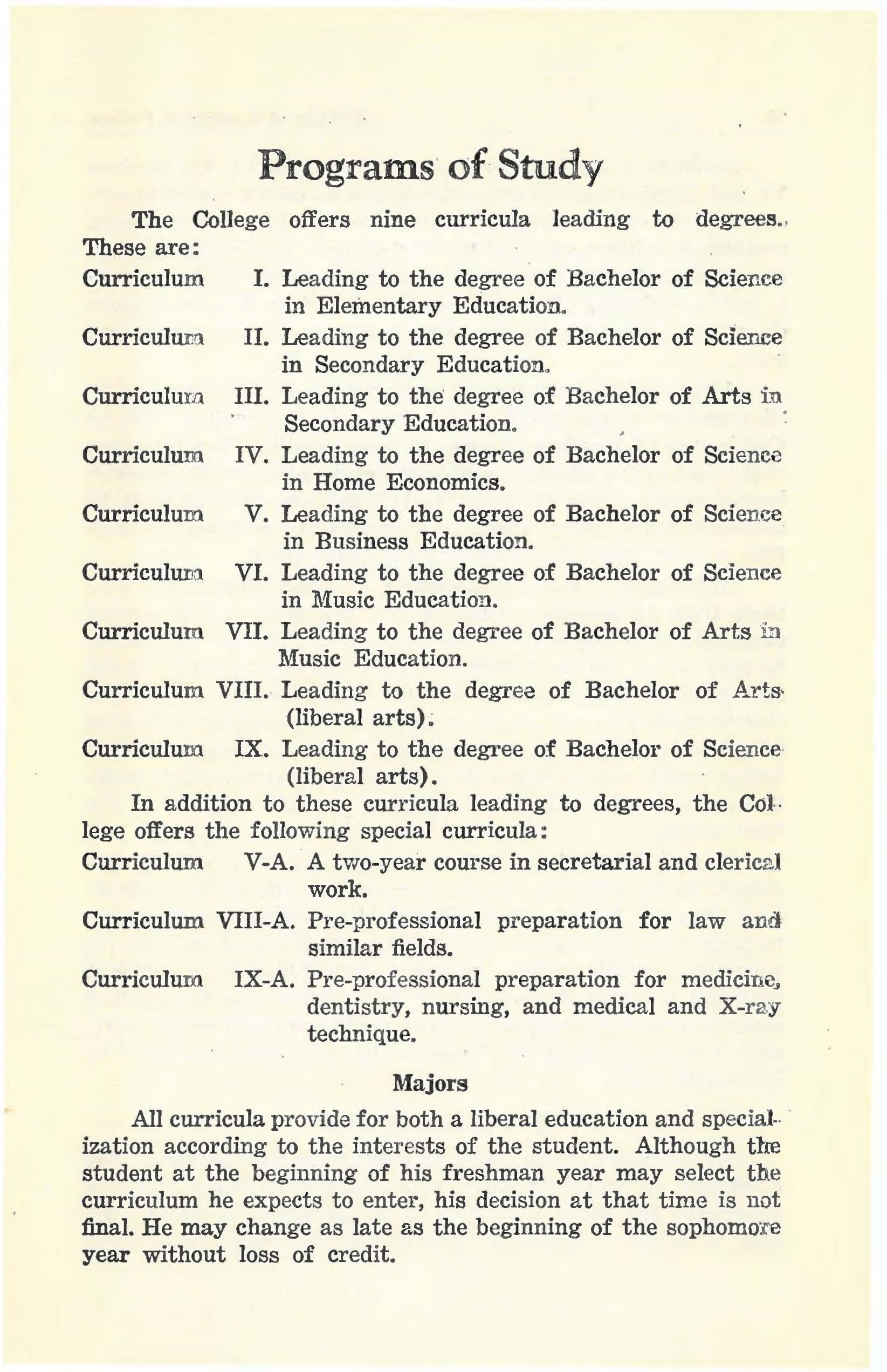 :Academic and professional life.... 27 Academic regulations.. • 49 Accounting. • • • • 74 Accreditation.. • . . . . . . . . . . .. . .. .. 19 Administrative offices.. • 20 Administrative officials. • • • 5 Admission requirements. . . . . . . . . . 39 Alpha Kappa Gamma............ 31 Application fee.................. 41 Art........................... . 71 Association for Childhood Education 31 Association of Alumnae .. ....... 39, 105 Athletic Association • • • • 29 Athletic facilities. 20 Auditoriums. • • • . . . . . . . . . . . . . . . . 21 Beorc Eh Thom. • . . . . . • . . . . • . . . . 31 Biology......................... 73 Book shop. • • • • • 21 Business education •••.... : ...... 61, 74 Calendar....................... 3 Campus 20 Changes in requirements.......... 52 Chemistry. . . . • . . . . . . . . . . . . . . . . . n Class rooms. • . . • . . . . . . . . . . . . . . . . 21 College life, phases. 25 College year. • • 25 Colonnade. 30 Commercial Club................ 31 Cotillion Club ................ ,.. 31 Course changes . ................. 49 Course numbers. • 49