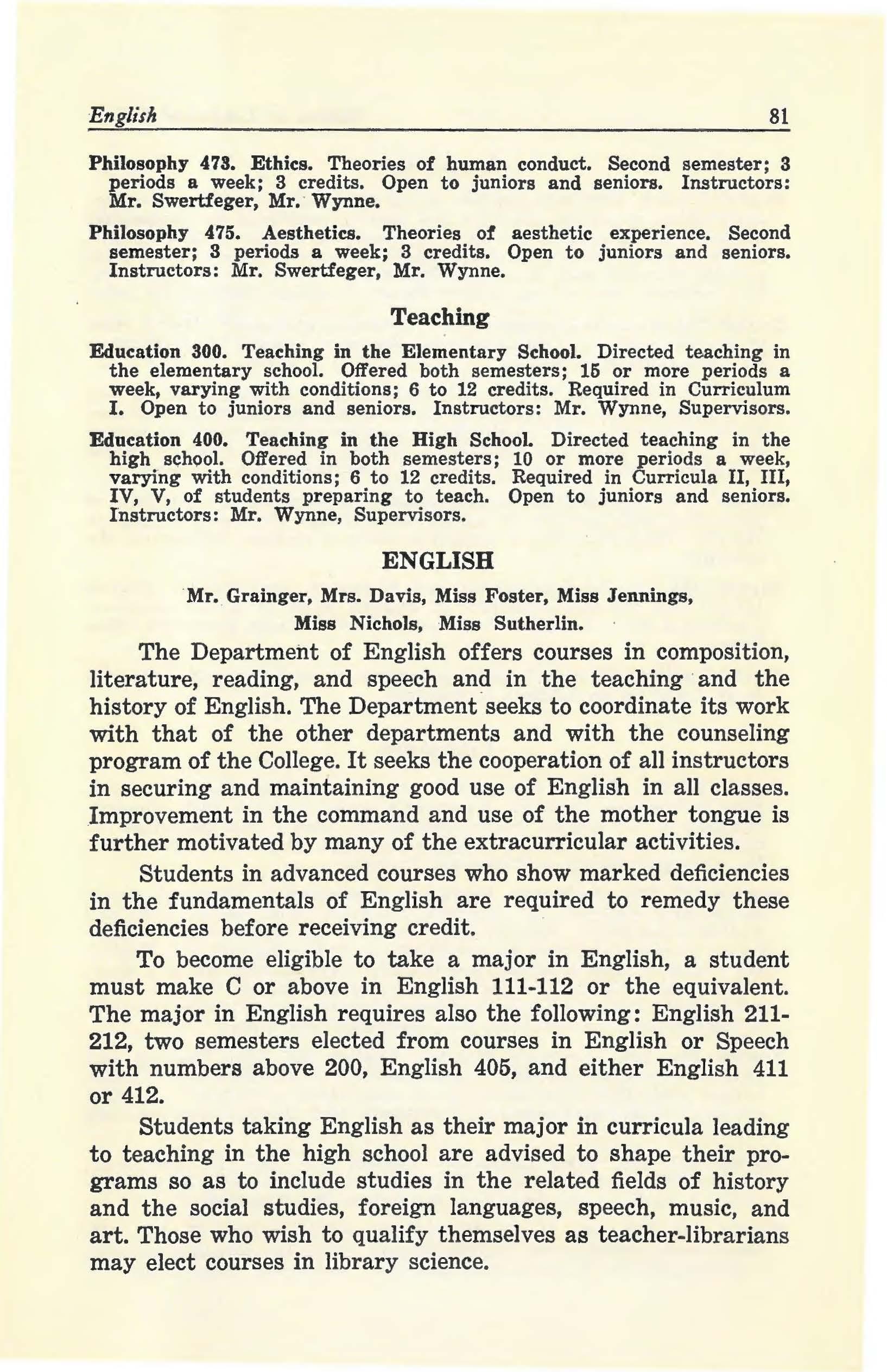 JAMES M. GRAINGER, B.A., M.A., Professor of English B.A., University of Cincinnati; M.A., University of North Carolina.