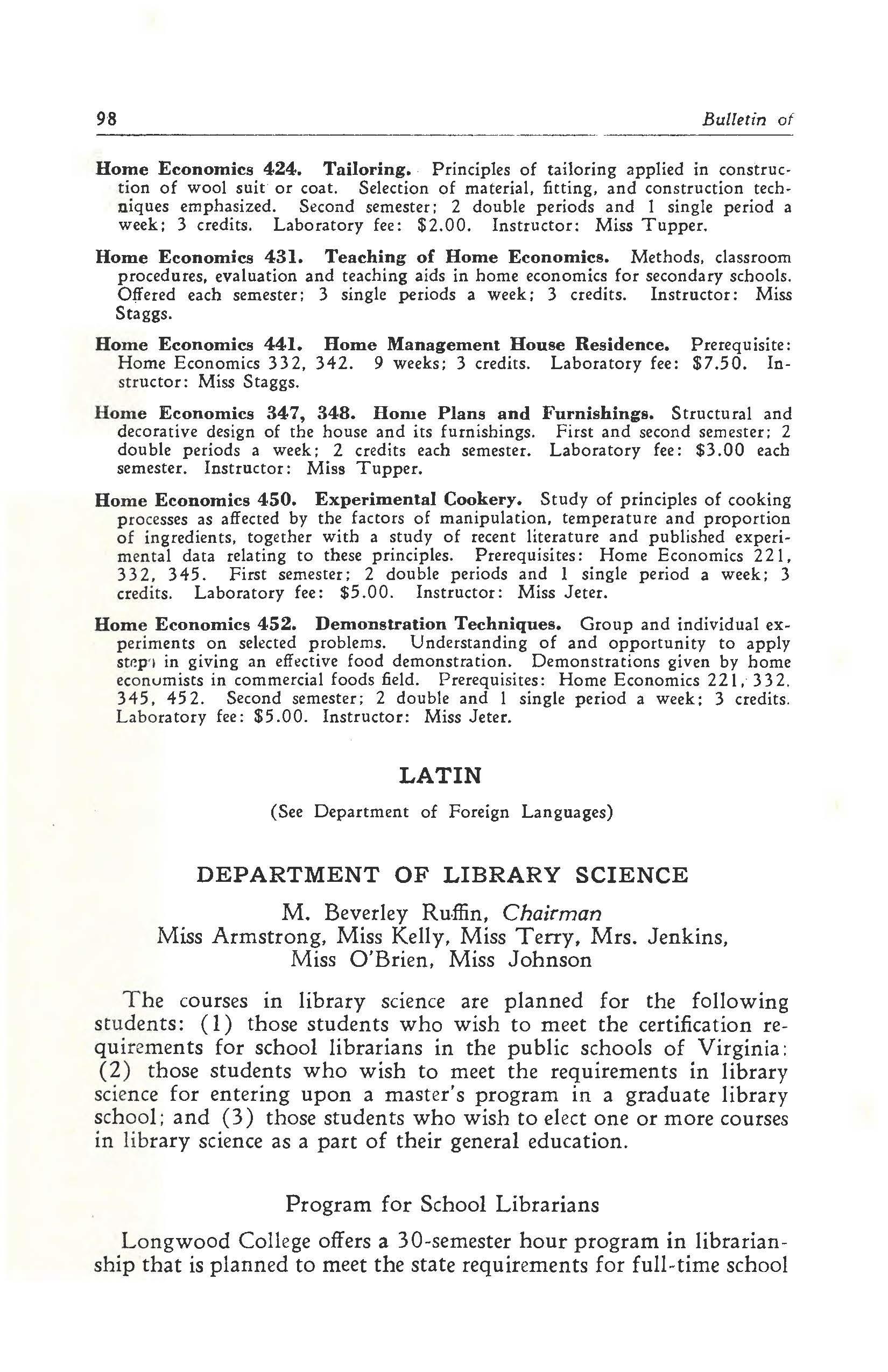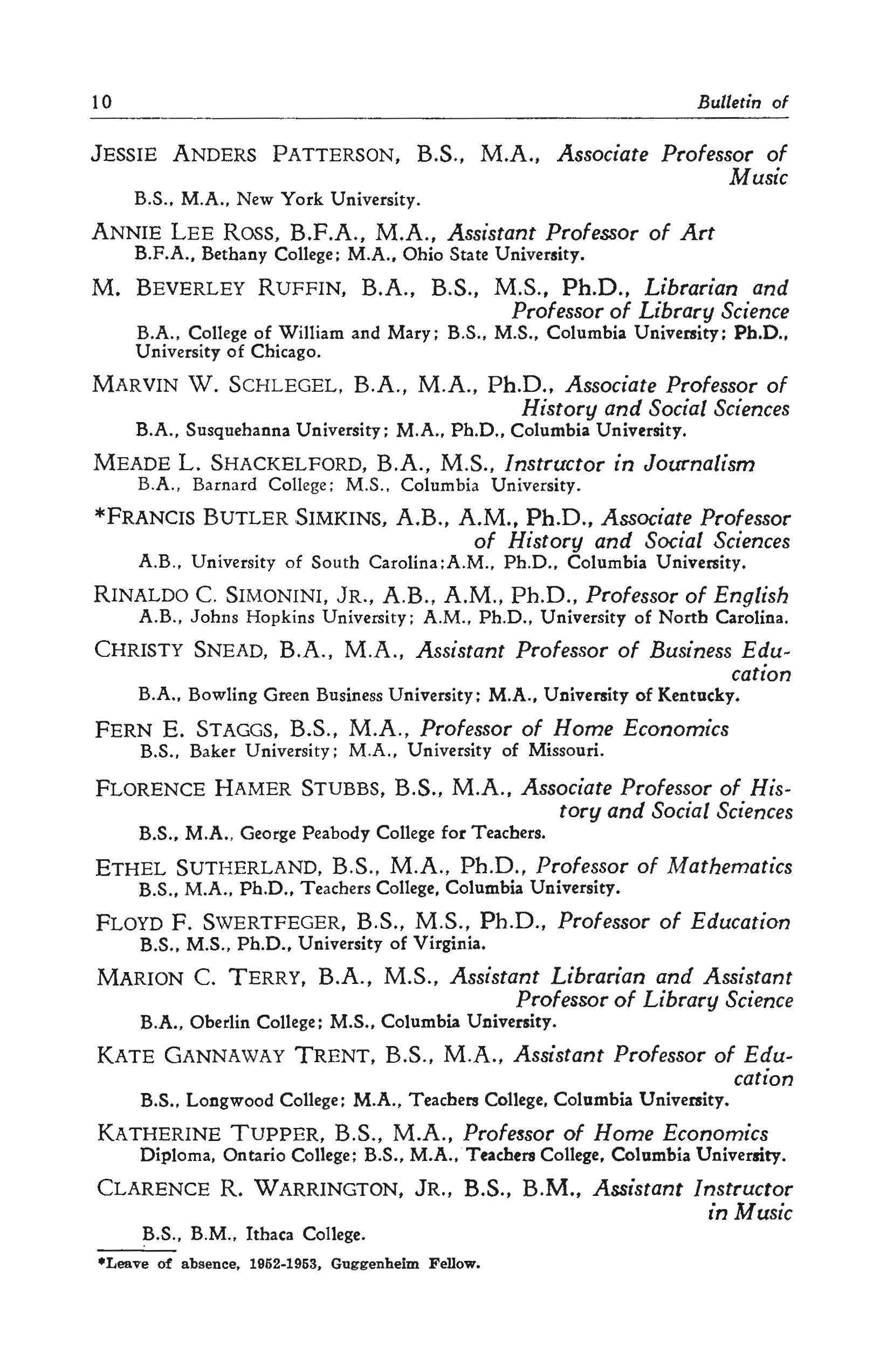 RUTH GLEAVES, B.S., M.A., Professor of Home Economics and Dean of Women B.S., Longwood College; M.A., Teachers College, Columbia University.