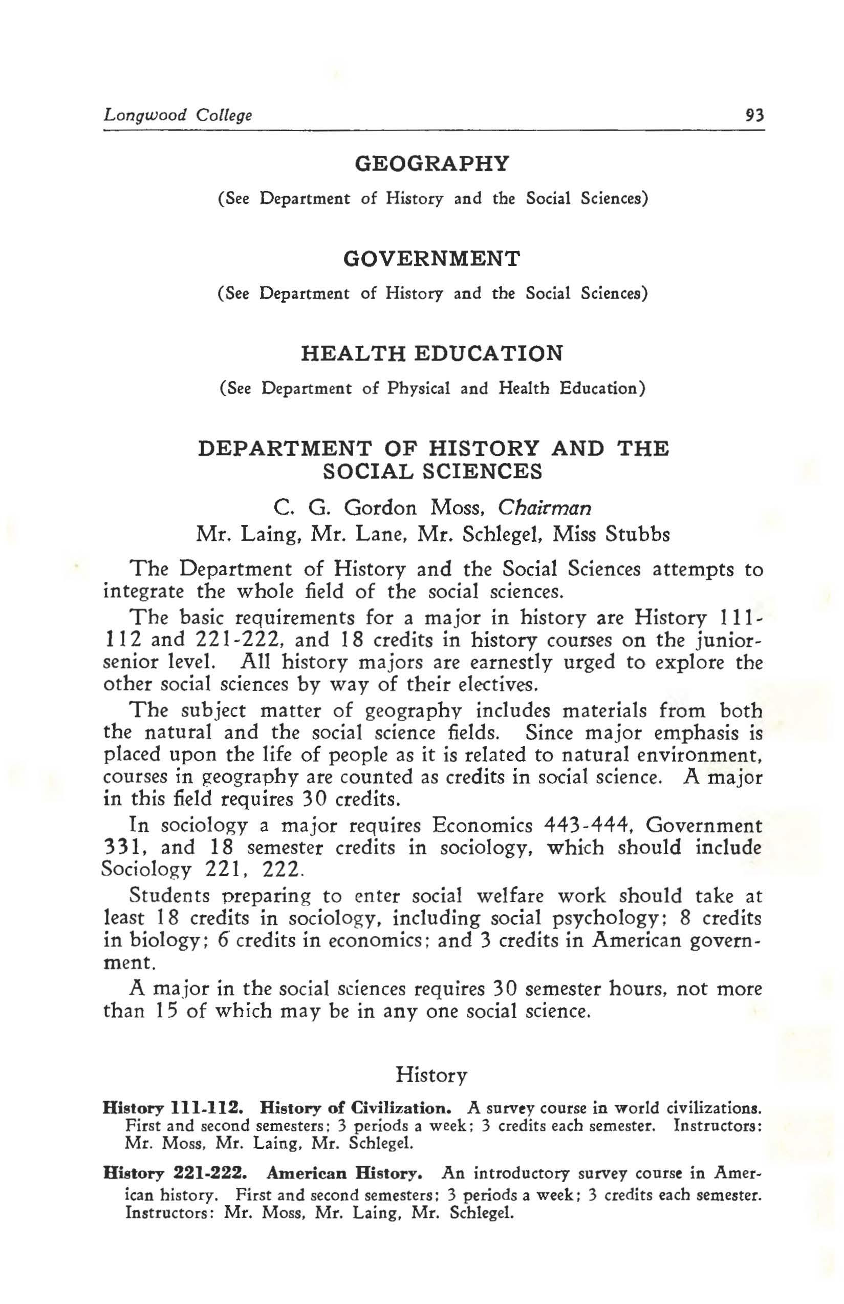 WESLEY N. LAING, A.B .• M.A., Assistant Professor of History and Social Sciences A .B., M.A., Baylor University.