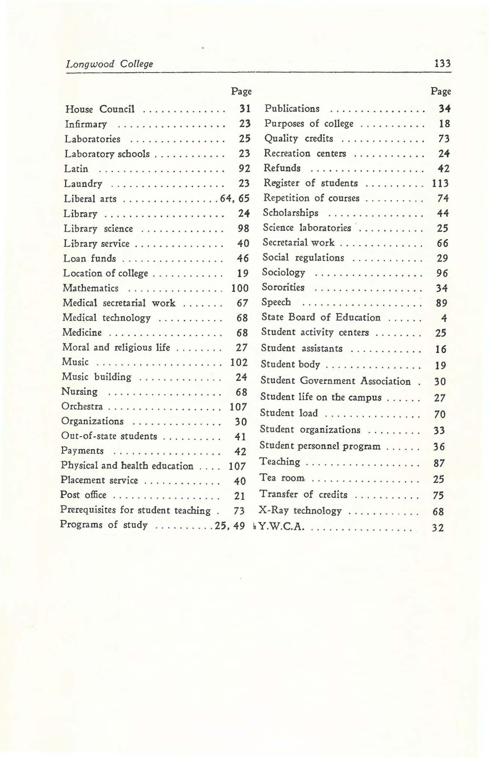 House Council . . . . . . . . . . . . . . 31 Infirmary 23 Laboratories 25 Laboratory schools . . . . . . . . . . . . 23 Latin 92 Laundry 23 Liberal arts 64, 65 Library . . . . . . . . . . . . . . . . . . . . 24 Library science 98