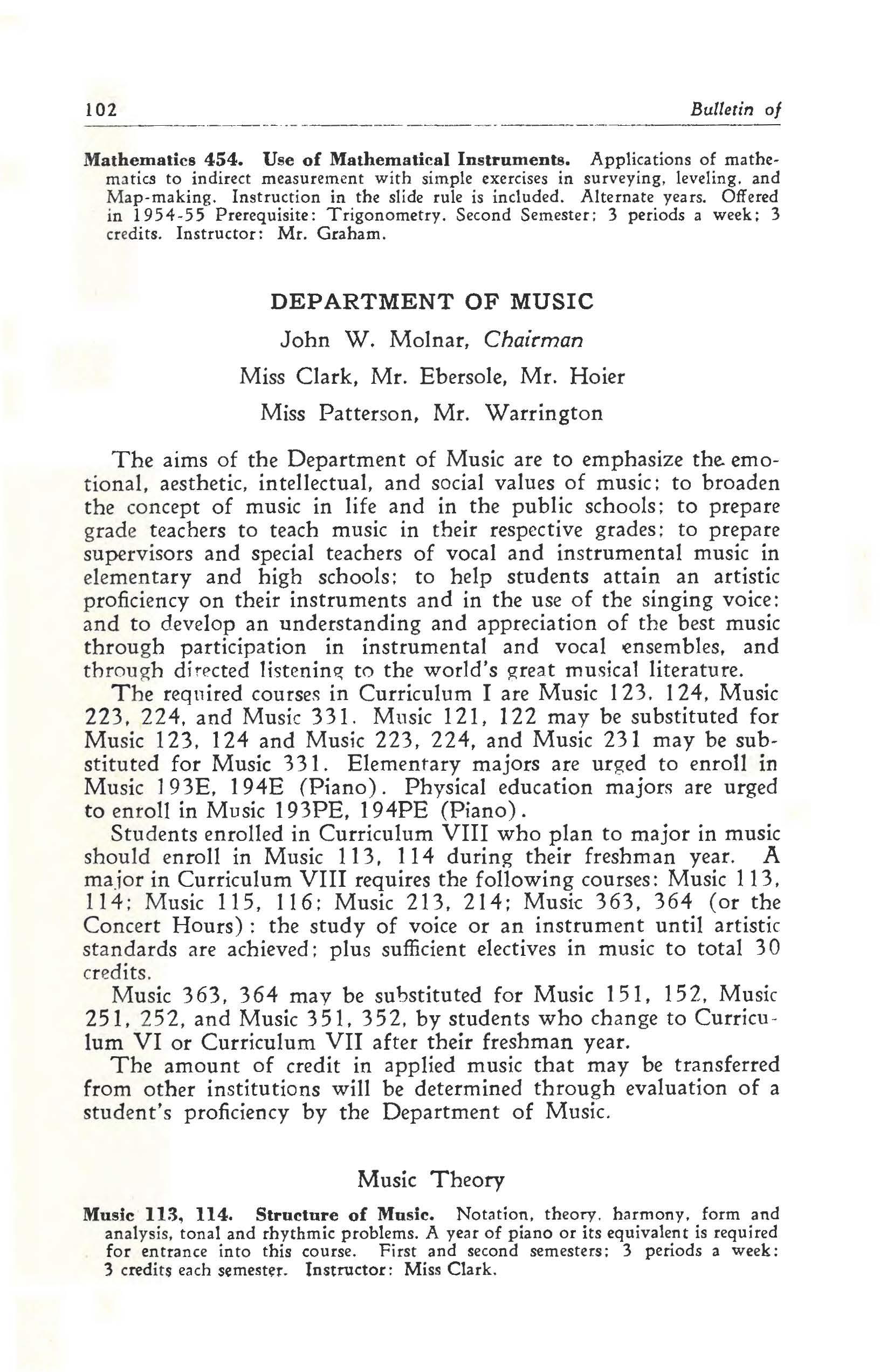 JOHN W. MOLNAR, B.Mus. , B.Sc., M.Ed., Ed.D., Professor of Music B .Mus., Cincinnati Conservatory of Music; B.Sc., M.Ed., Ed.D., University of Cincinnati.