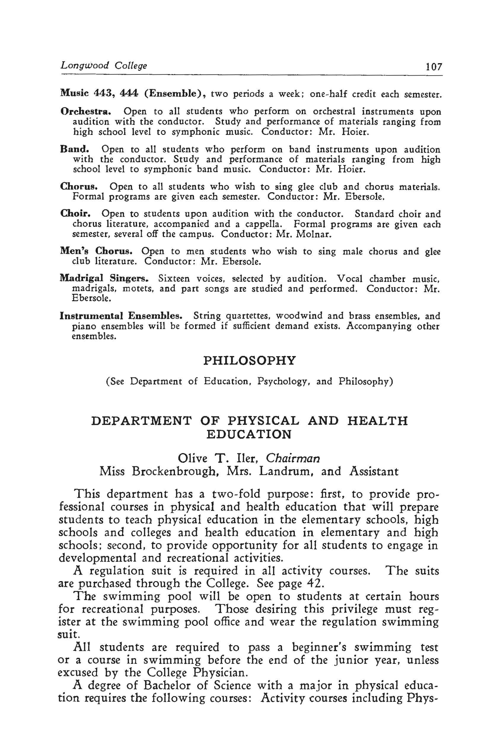 OLIVE T. ILER, B.S., M.A., Associate Professor of Physical and Health Education Graduate, Sargent School of Phy1ical Education; B.S., Longwood College; M.A., Teachers College, Columbia University.