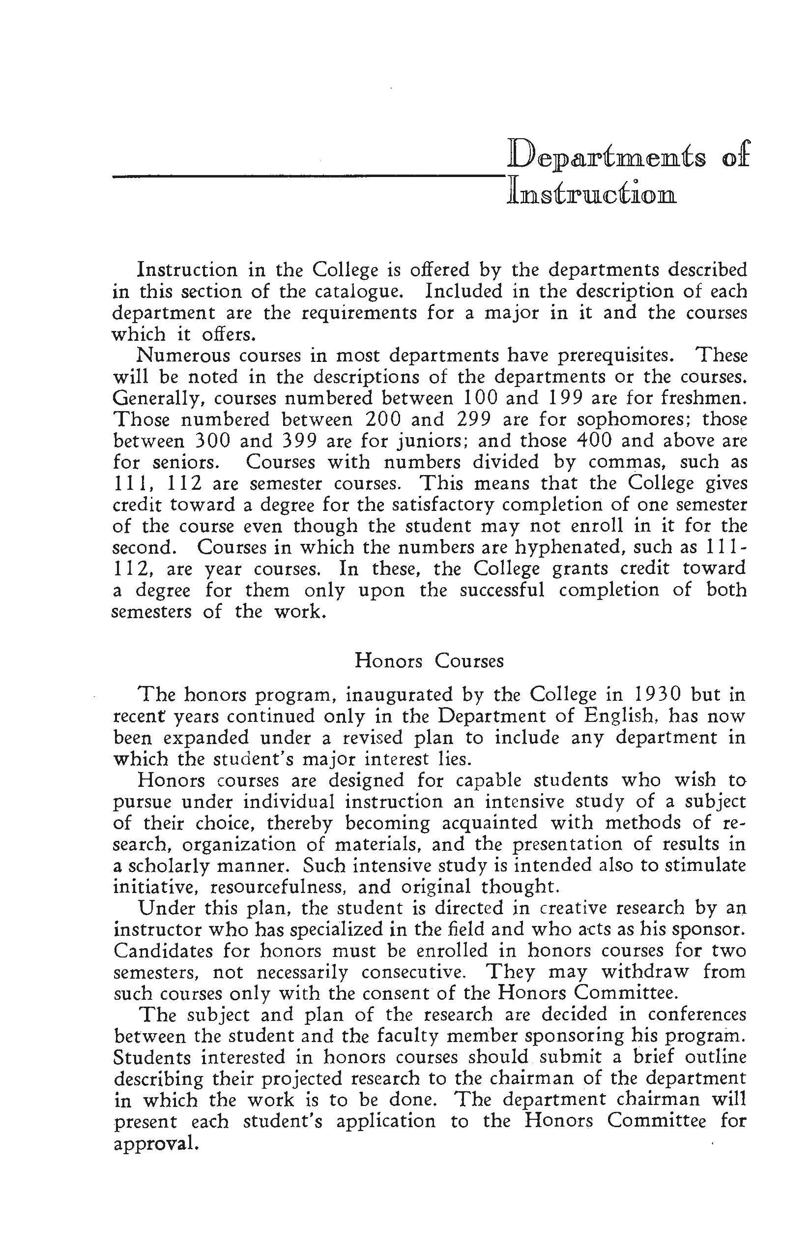 History and social sciences .. . .. . History of the college Home economics .. Home management house Honor Code Honor societies Honors courses