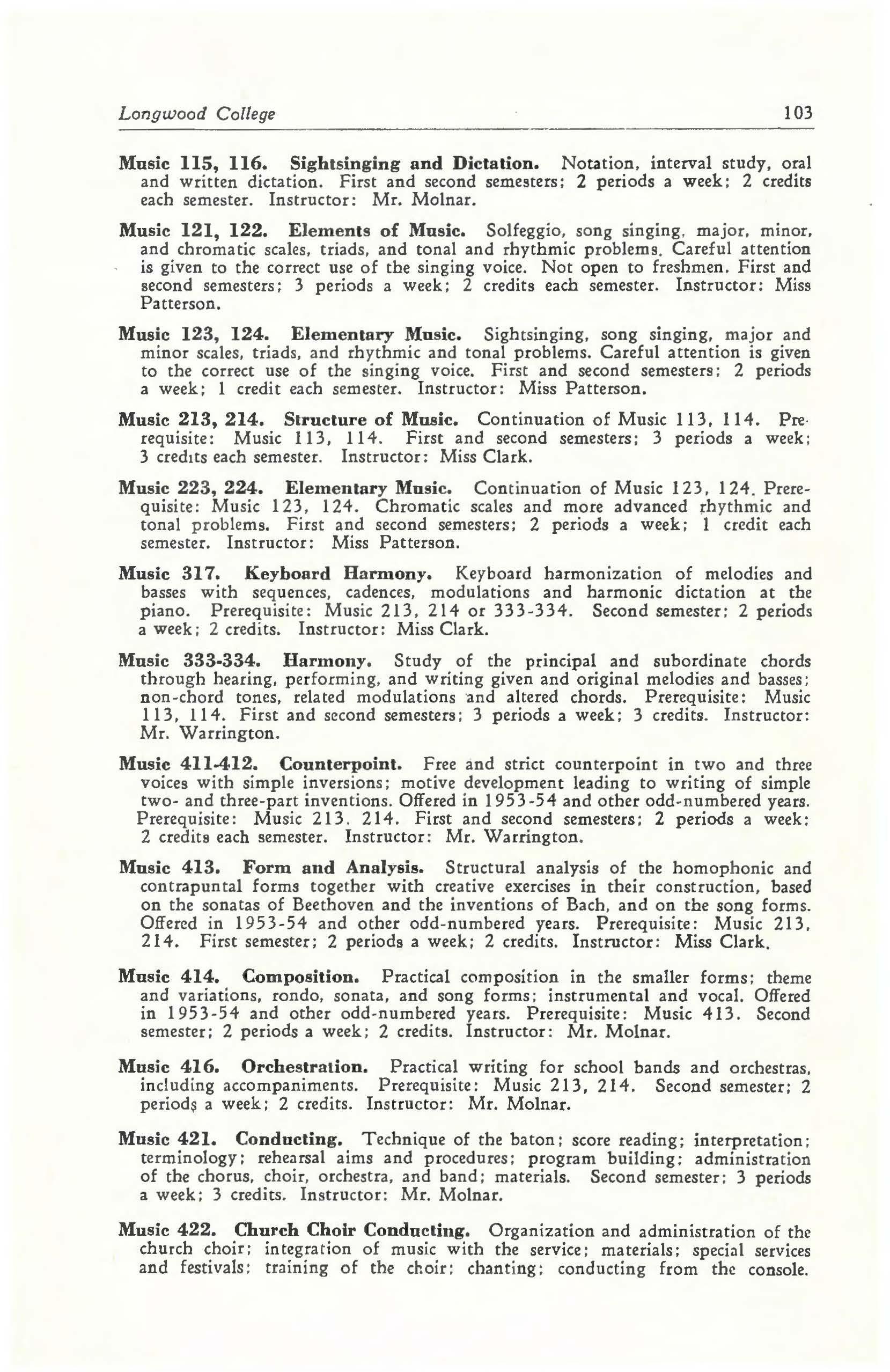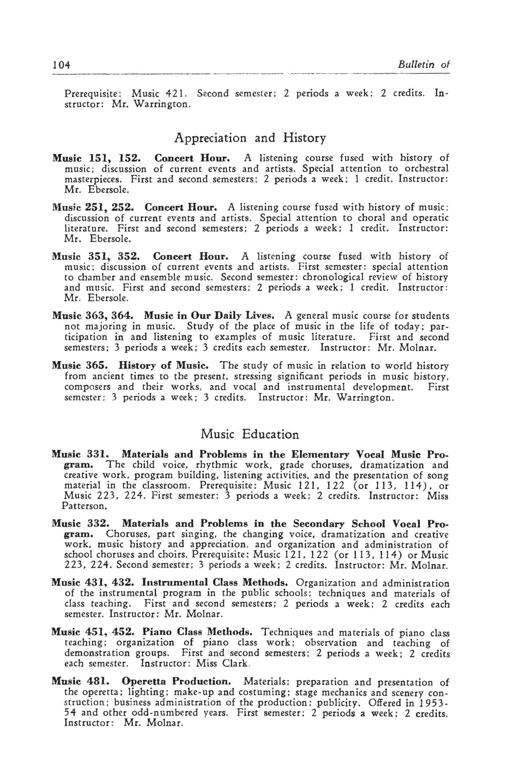 EMILY CLARK, B.S., M.A., Assistant Professor of Music B.S., Johns Hopkins University and Peabody Conservatory; M.A., Teachers College, Columbia University.