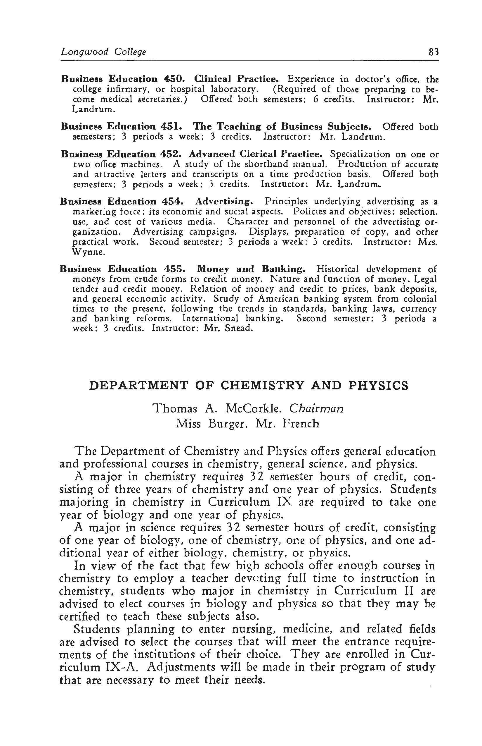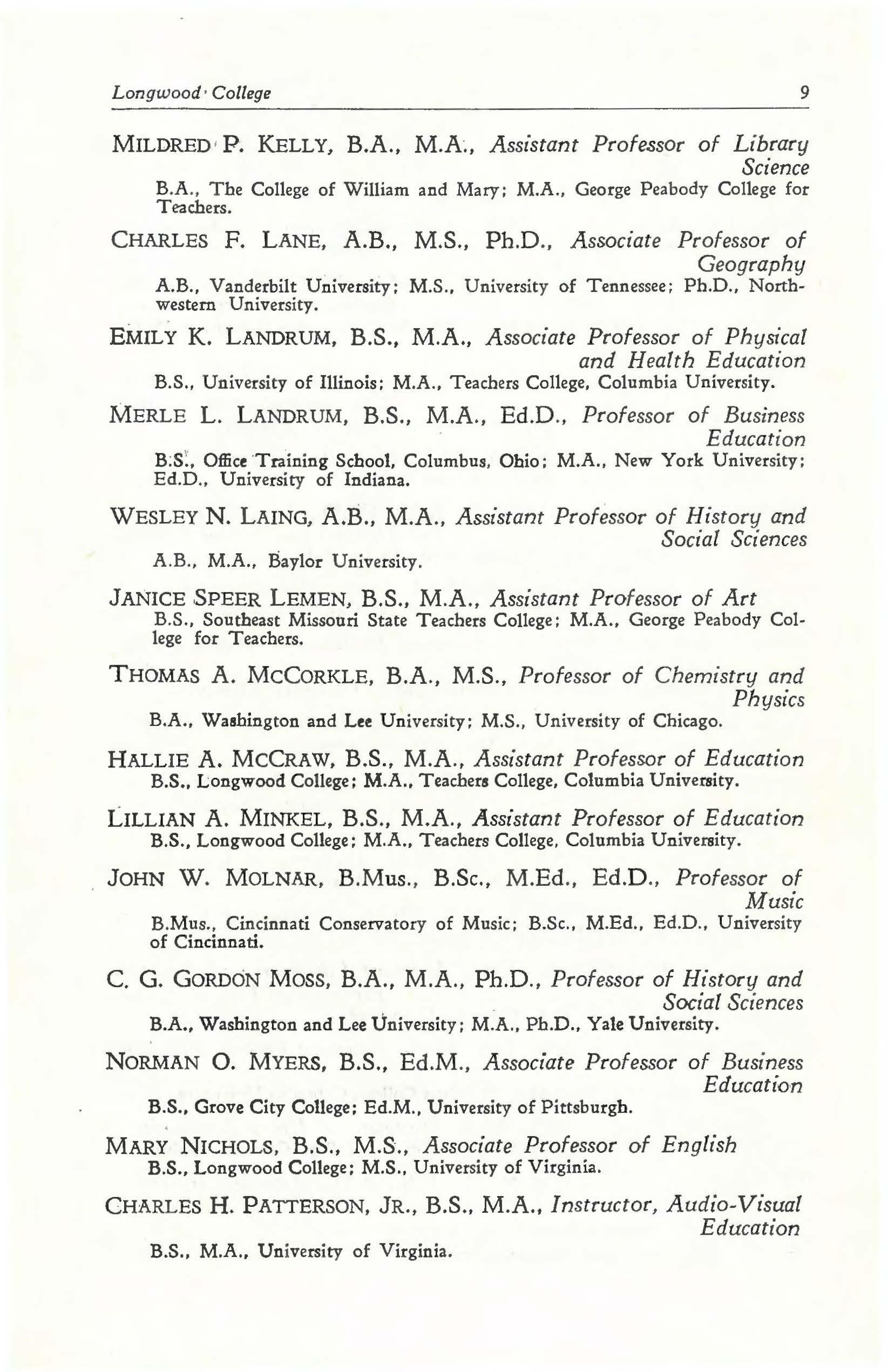 HALLIE A. MCCRAW, B.S., M.A., Assistant Professor of Education B.S., Longwood College; M.A .. Teachers College, Columbia University.