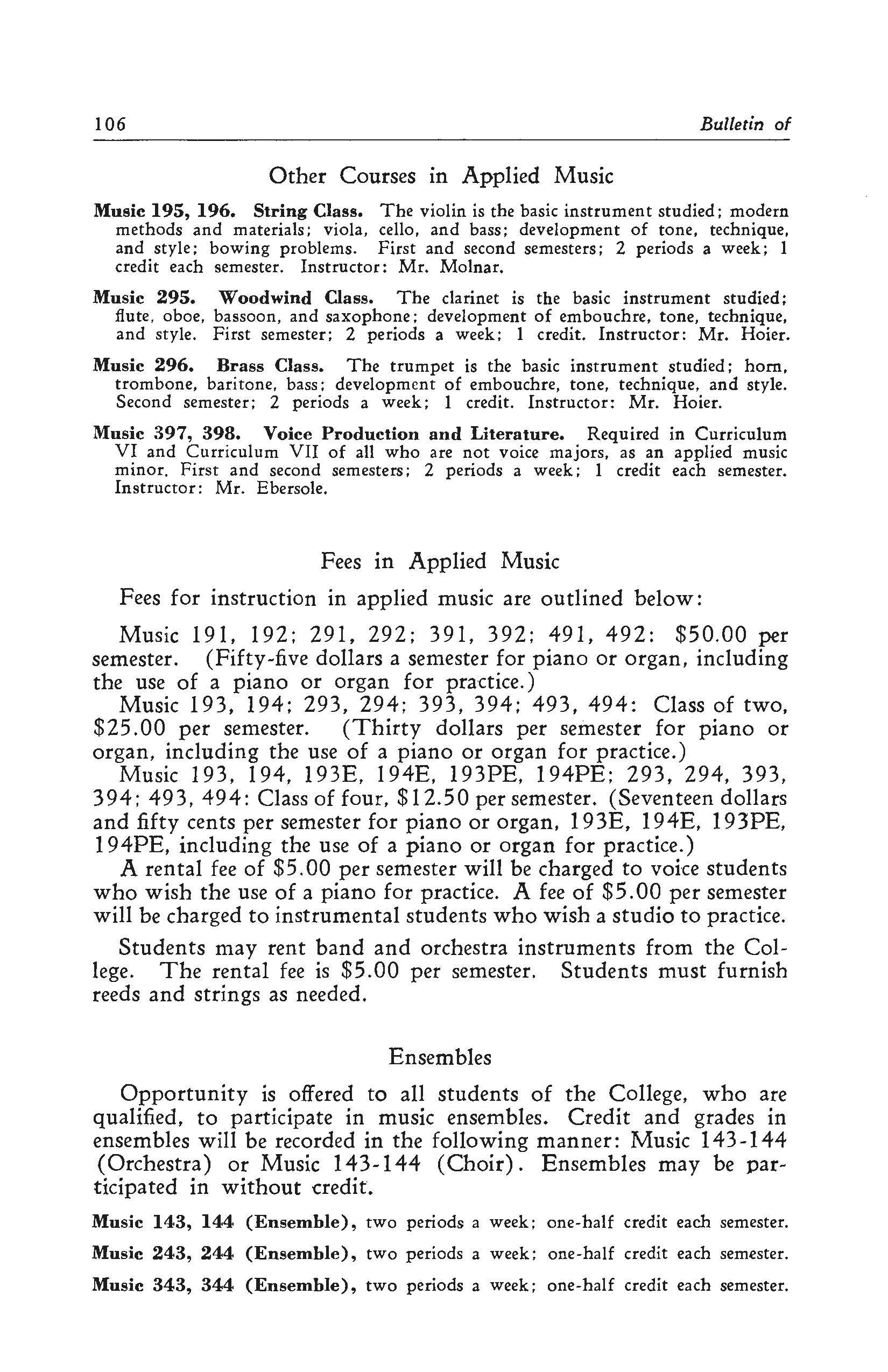 JOEL K. EBERSOLE, B.S., M.M., Instructor in Music B.S., University of Cincinnati, M.M.. University of Indiana.