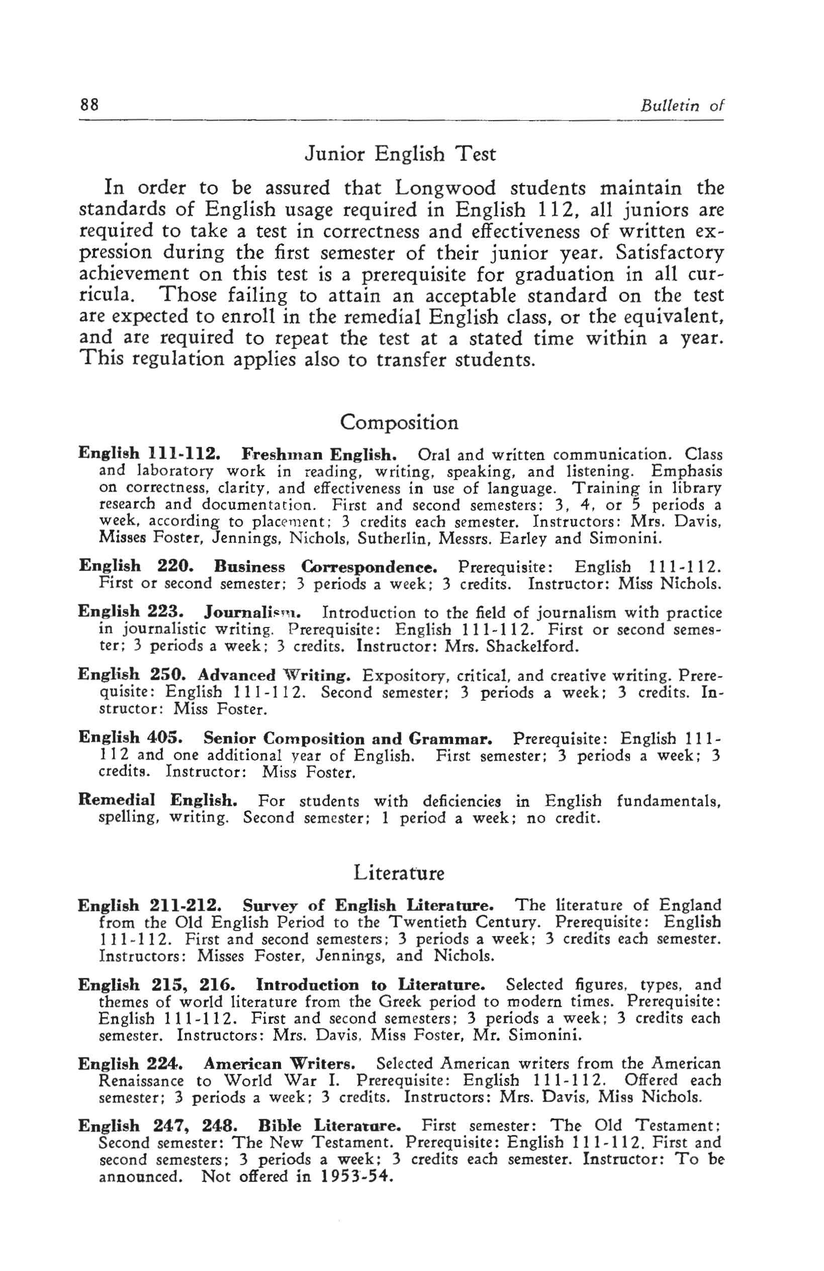 MILDRED D. DAVIS, B.S., M.S., Assistant Professor of English B.S., Longwood College; M.S., University of Virginia.
