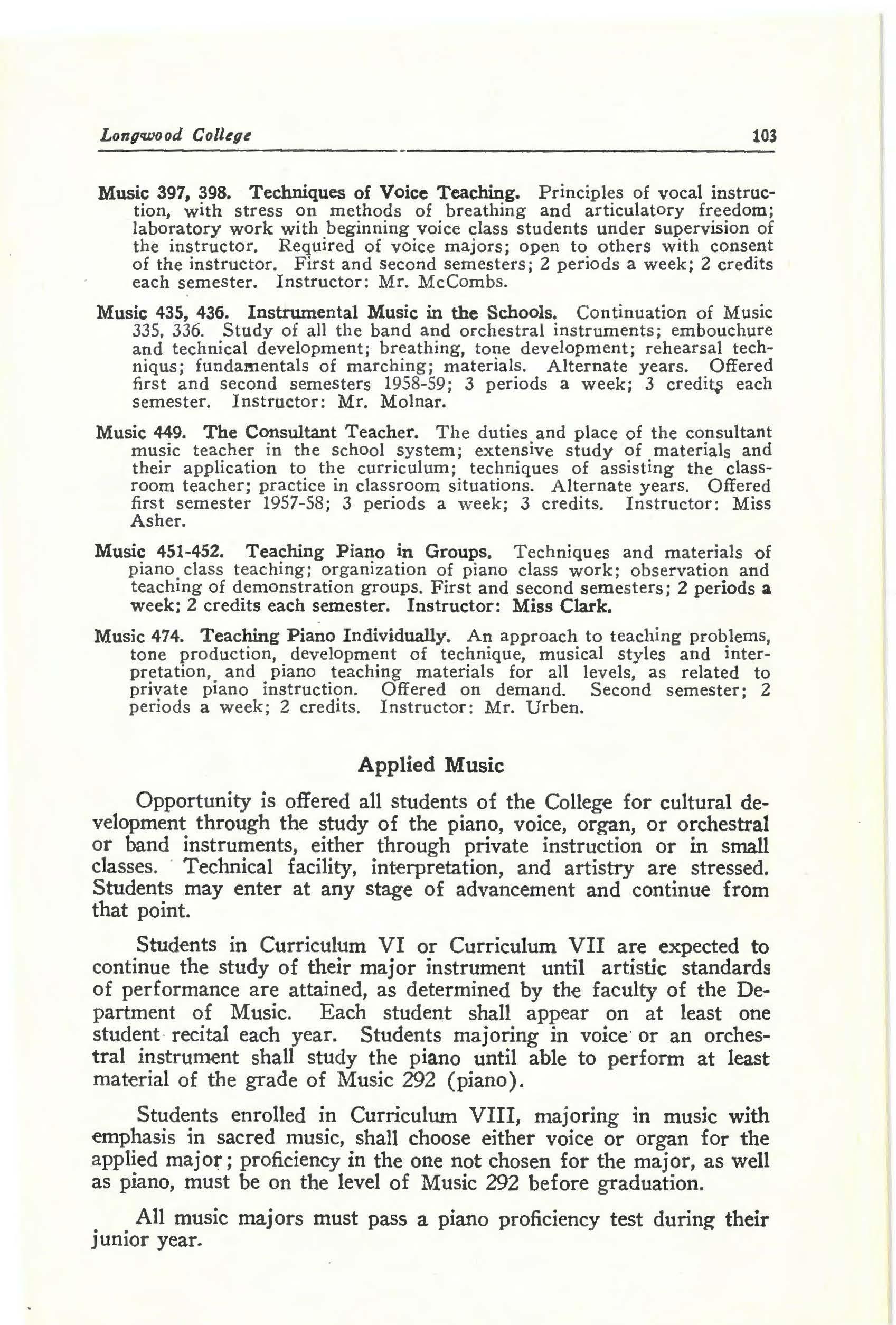 M. PUCKETT ASHER, B.A., M.A., Assistant Professor in Music B.A., Longwood College; M.A., Teachers College, Columbia University.
