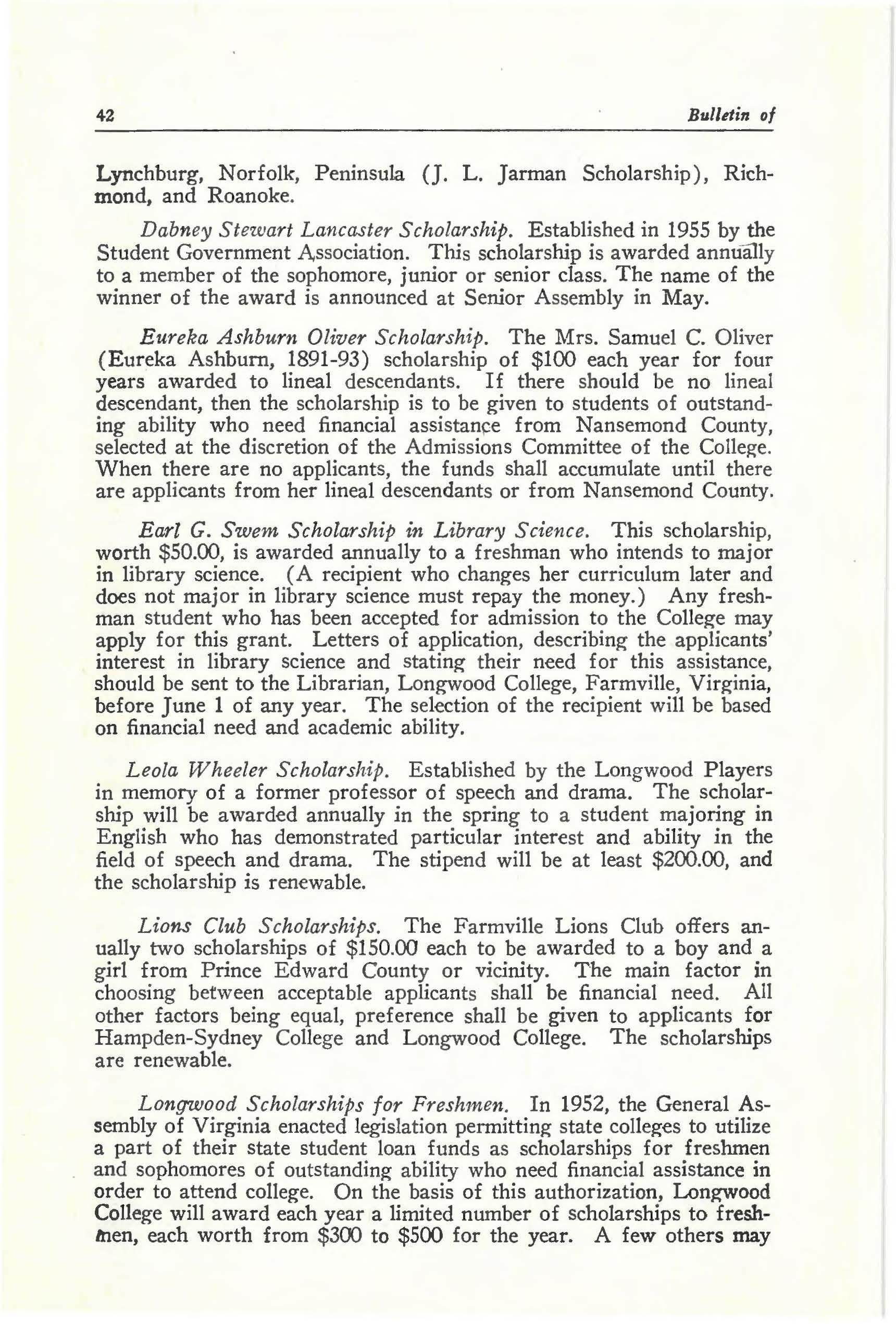 In addition to the publications listed inside the front cover. Longwood College has the following publications which may be obtained by writing to the Director of Public Relations.