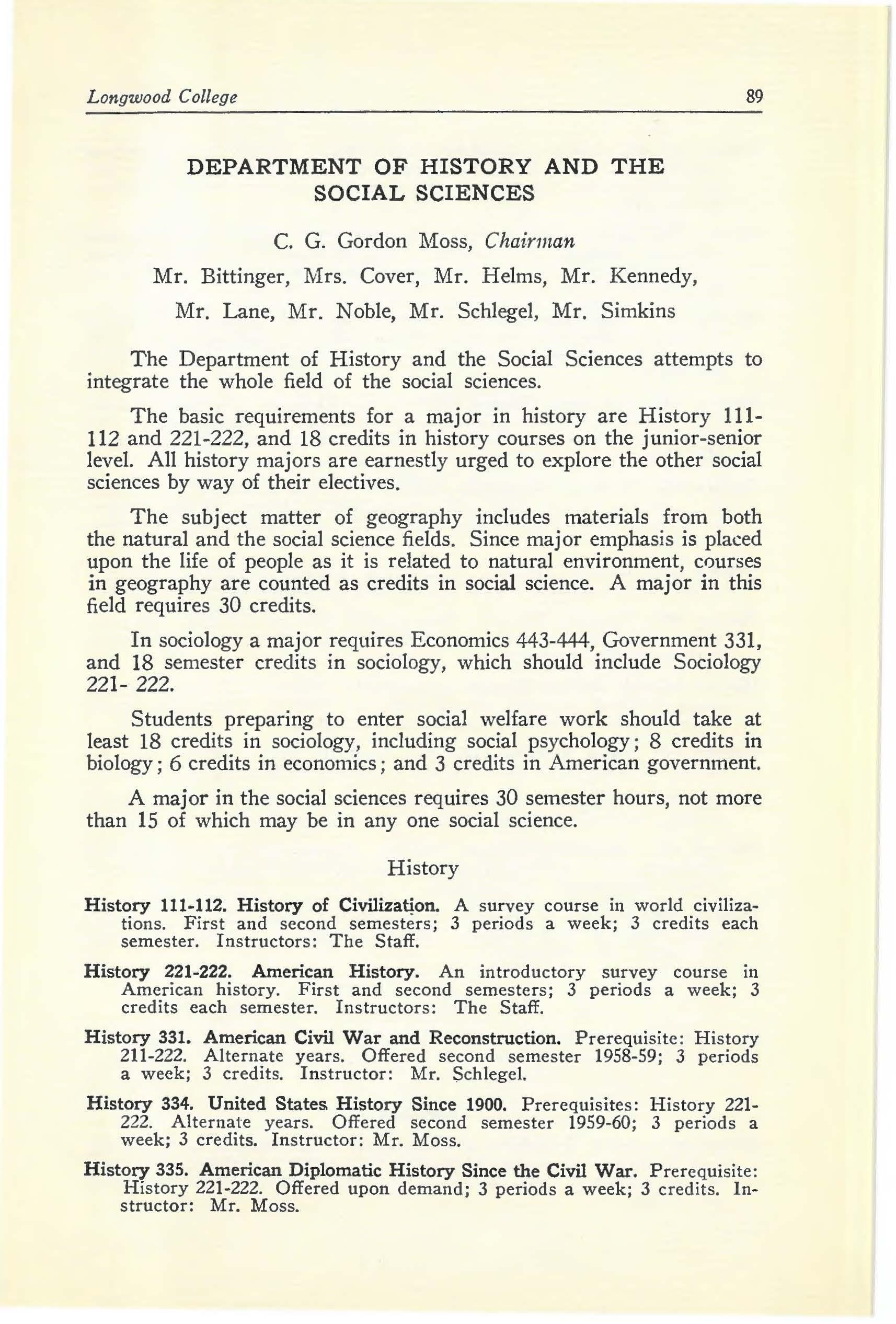 KATHLEEN G. COVER, B.A., M.A., Associate Professor of History and Social Sciences B.A., Randolph-Macon Woman's College; M.A., College of William and Mary.