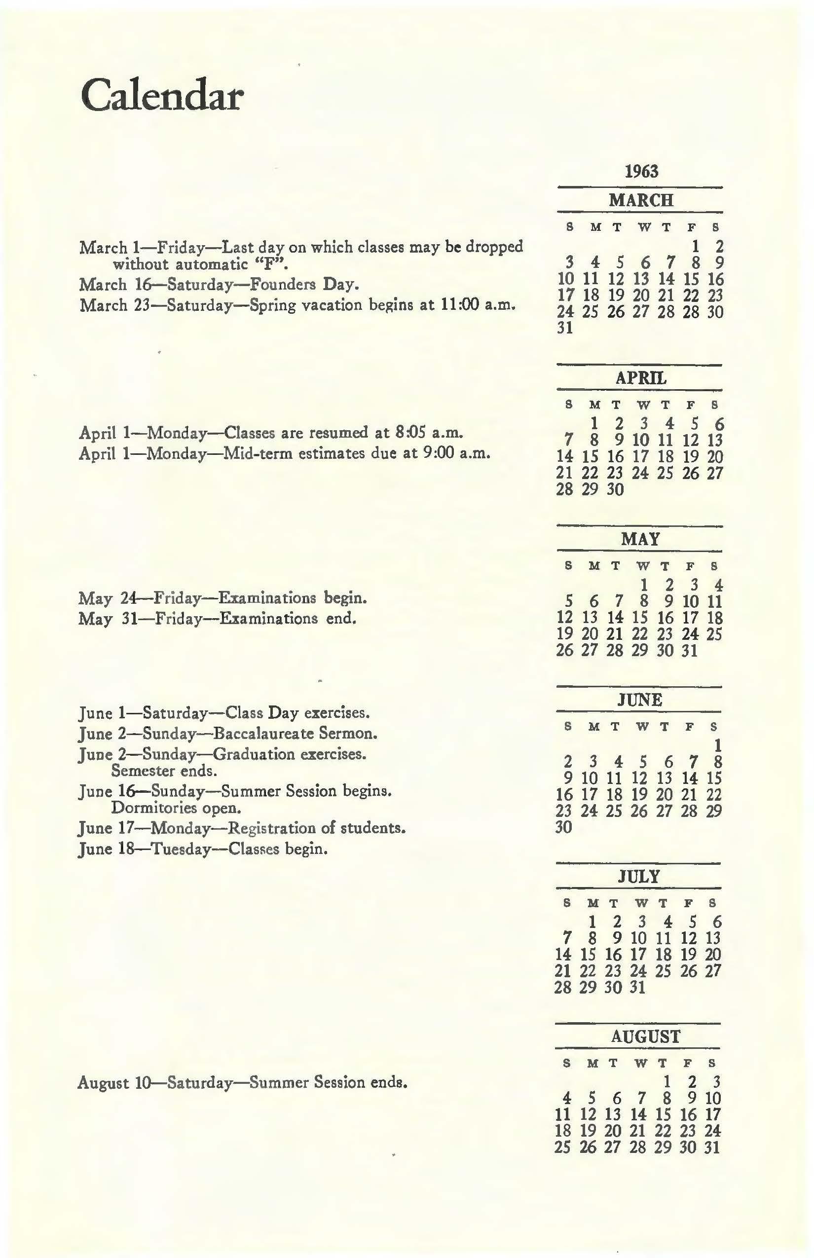 June 16-Sunday-Summer Session begins. Dormitories open.