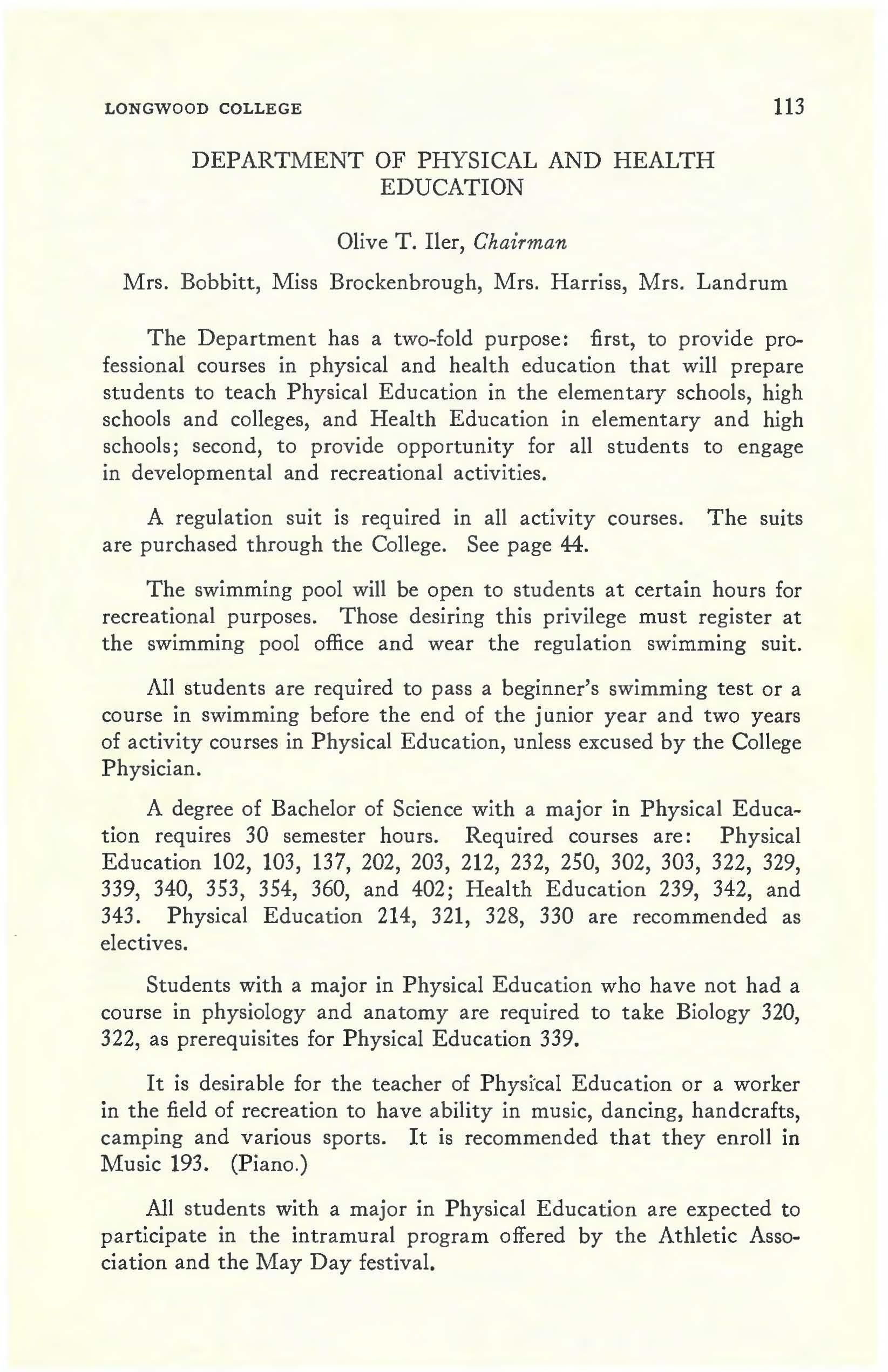 ELEANOR W. BOBBITT, B.S., M.A .... Assistant Professor of Physical and Health Education B.S., Longwood College; M.A., University of Tennessee.