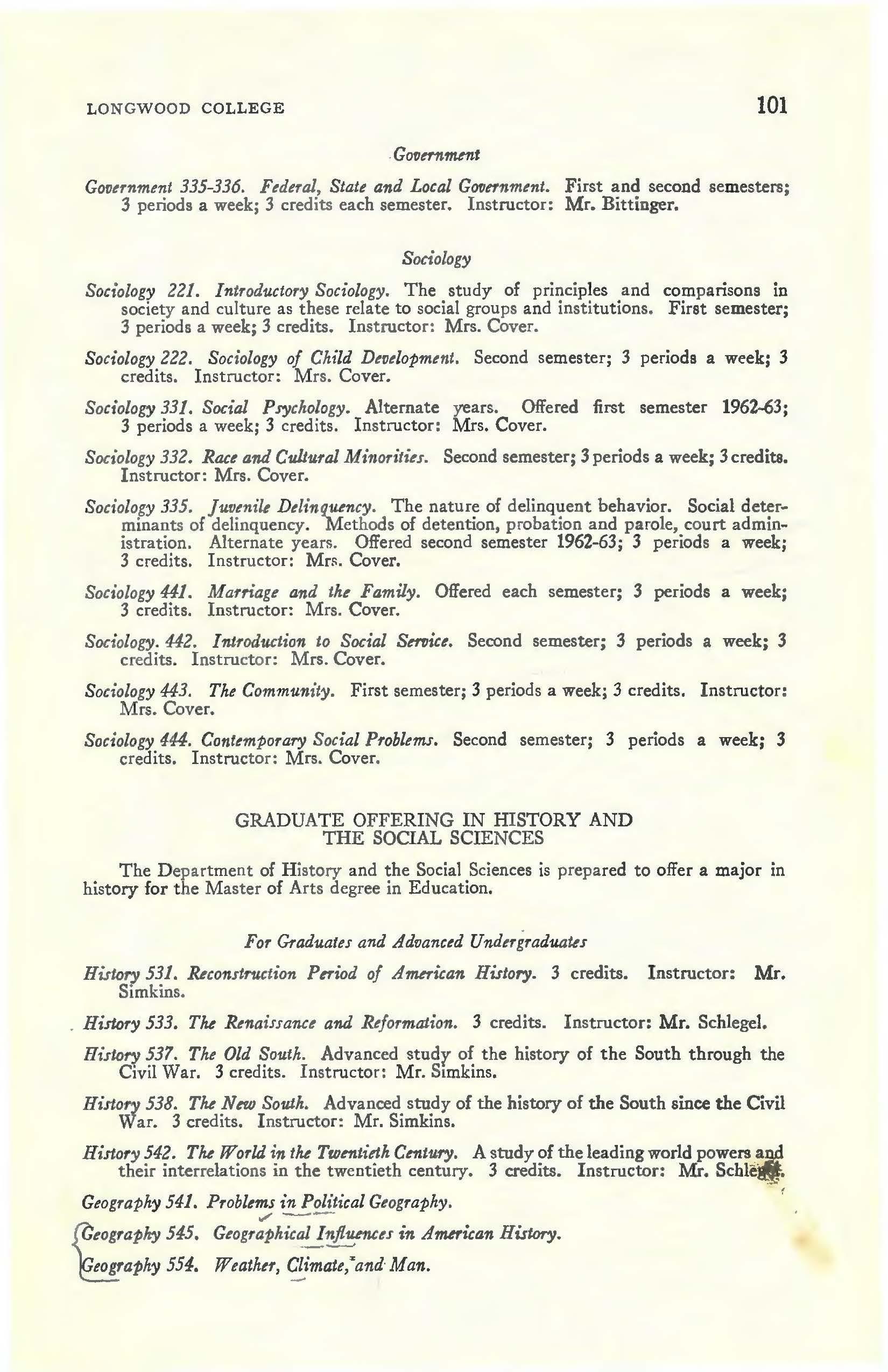General Science, , ,.,,,,., 111 Geology. . . . .. . . . • • • . • • • • • . . . . . . • . . ll2 Geography ..•...•••.••• , , , 99 Government .•••.••• , ••• , • • • . . . . . . . 101 Grades ,........................ 55 Graduate study., ...••..•...••.. , , 73 Graduation requirements .• ,......... 60 Guests ....................... ,.. .. 45 Guidance and counseling ,,,....... 27