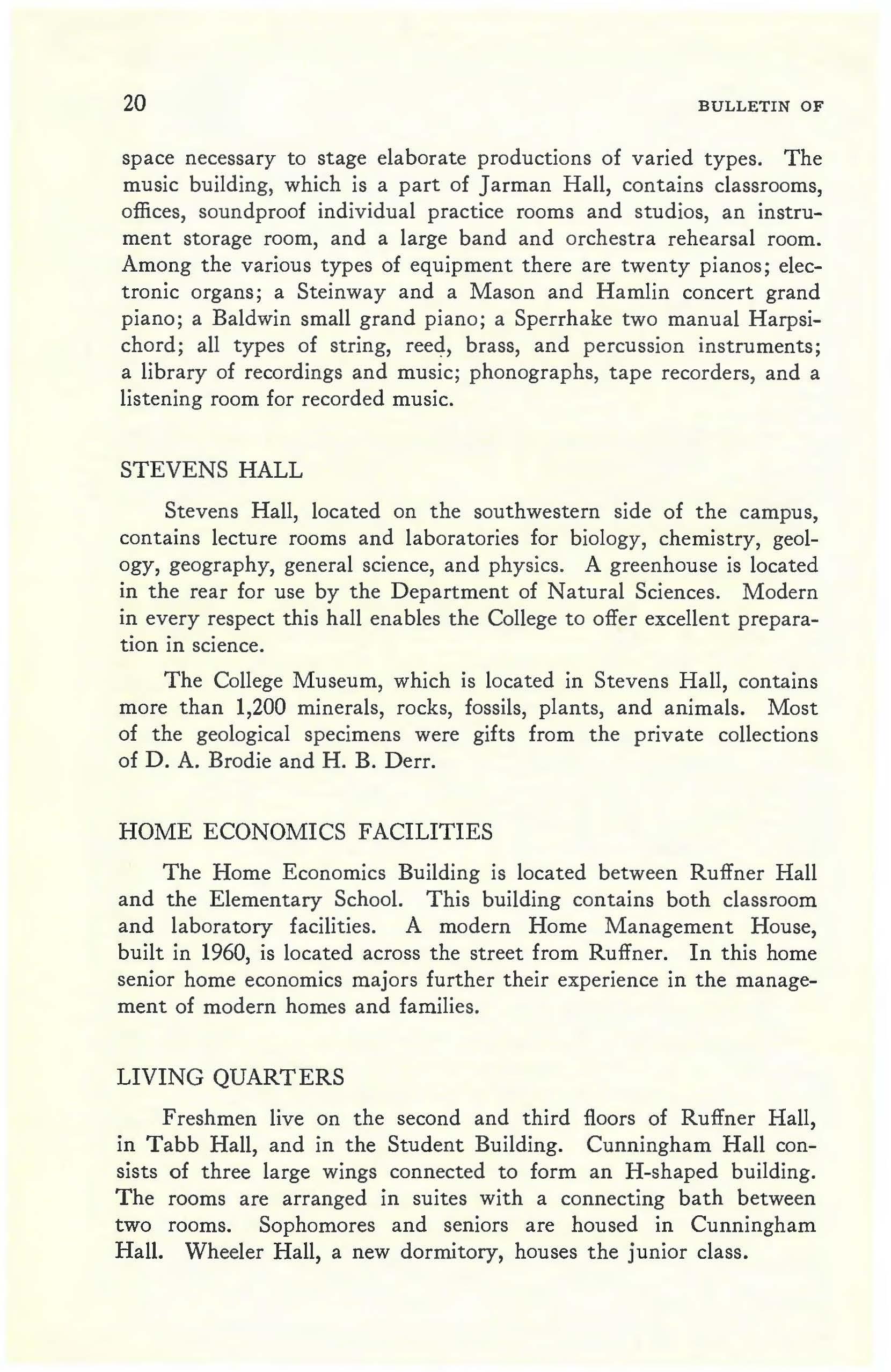 Dormitories ......•...•..•••• , 20 Dramatics , ....••.... , .•..•.... 38, 93 Economics. . . . . . . • • . • • . • . . • . . . . • . . 99 Education......................... 86 Educational Objecti ves. , , , 15 Employment. .......•..• , 46 English , •...... , , 90 Enrollment 1961-62 •••••....•••.... 119 Examinations ,44, 58 Expenses.......................... 41 Faculty, college ..•....••.••.••... ,. 8 Financial assistance • • . • • • • • . • . • . . . . 45 Foreign languages ... , ... , ... ,,,.... 95 French ...•.....•... , ... , .. , . , , . . . . 96
