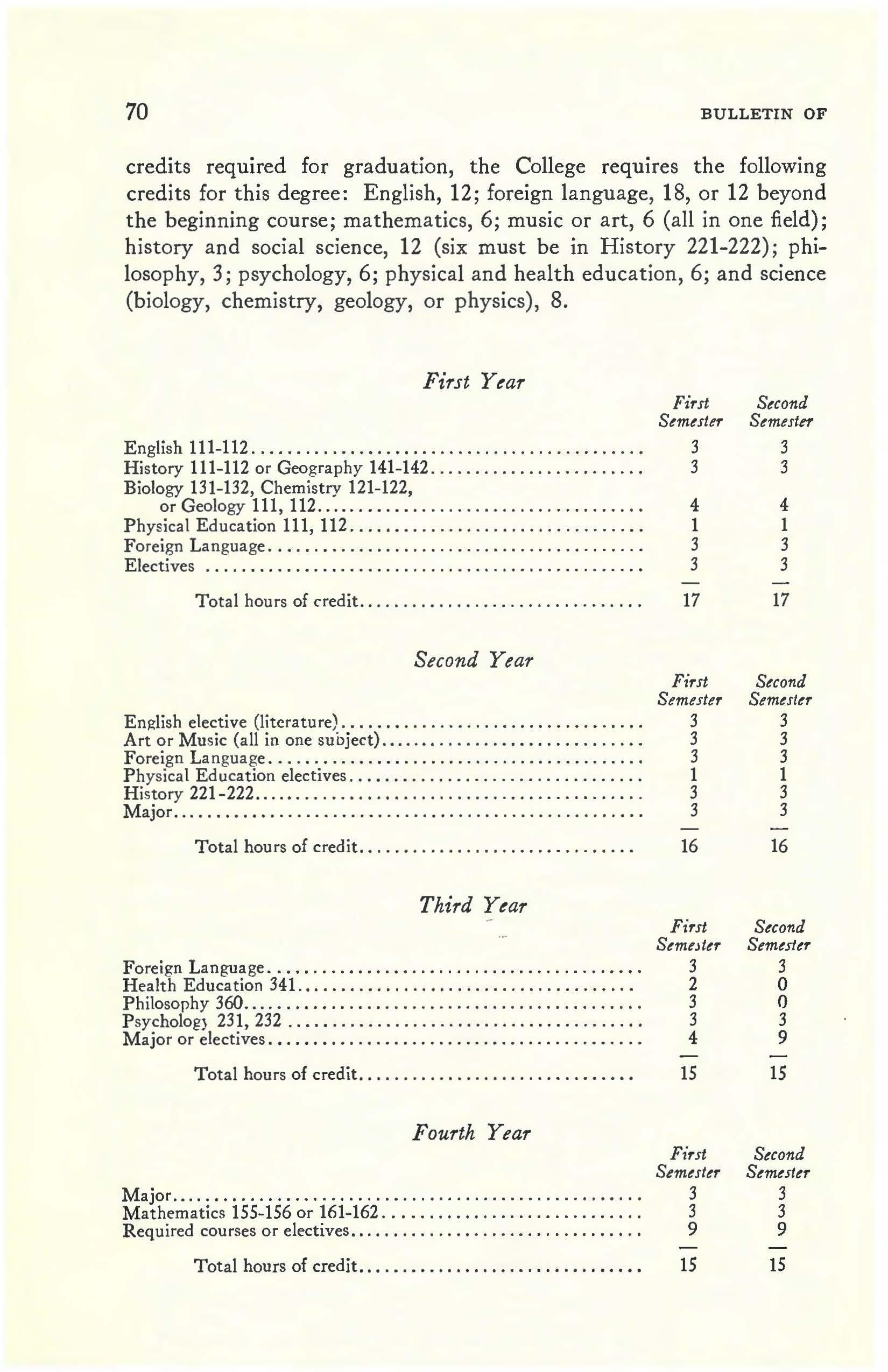 Cultural, social and recreational life.... . . . . . . . . . . . . . . . . . . . . . . . . . 32 Day students....... .............. . 42 Departments of instruct ion ..••.... , 79 Administrative officers.... 6 Dining room ..... , .. , .. ,,, ... ,.,.,, 18 Administrative offices . . . . . . . . . . . . . • 18 Diploma fee....................... 44 Admission requirements............. 25 Advanced standing................. 53 Alumnae Association ..............• 117 Application blank.. . . . . . . . . . . . . . . . . 123 Application fee , , , 43 Art............................... 81 Athletic Association................ 36 Athletic facilities................... 18 Auditorium....................... 19 Auditor's fee....................... 43 Band............................. 38 Biology .••....•••...........•. , ll0 Board, room, laundry, fees. , . , , , , , , , 41 Book Shop , •• , •..... ,.,,. 18
