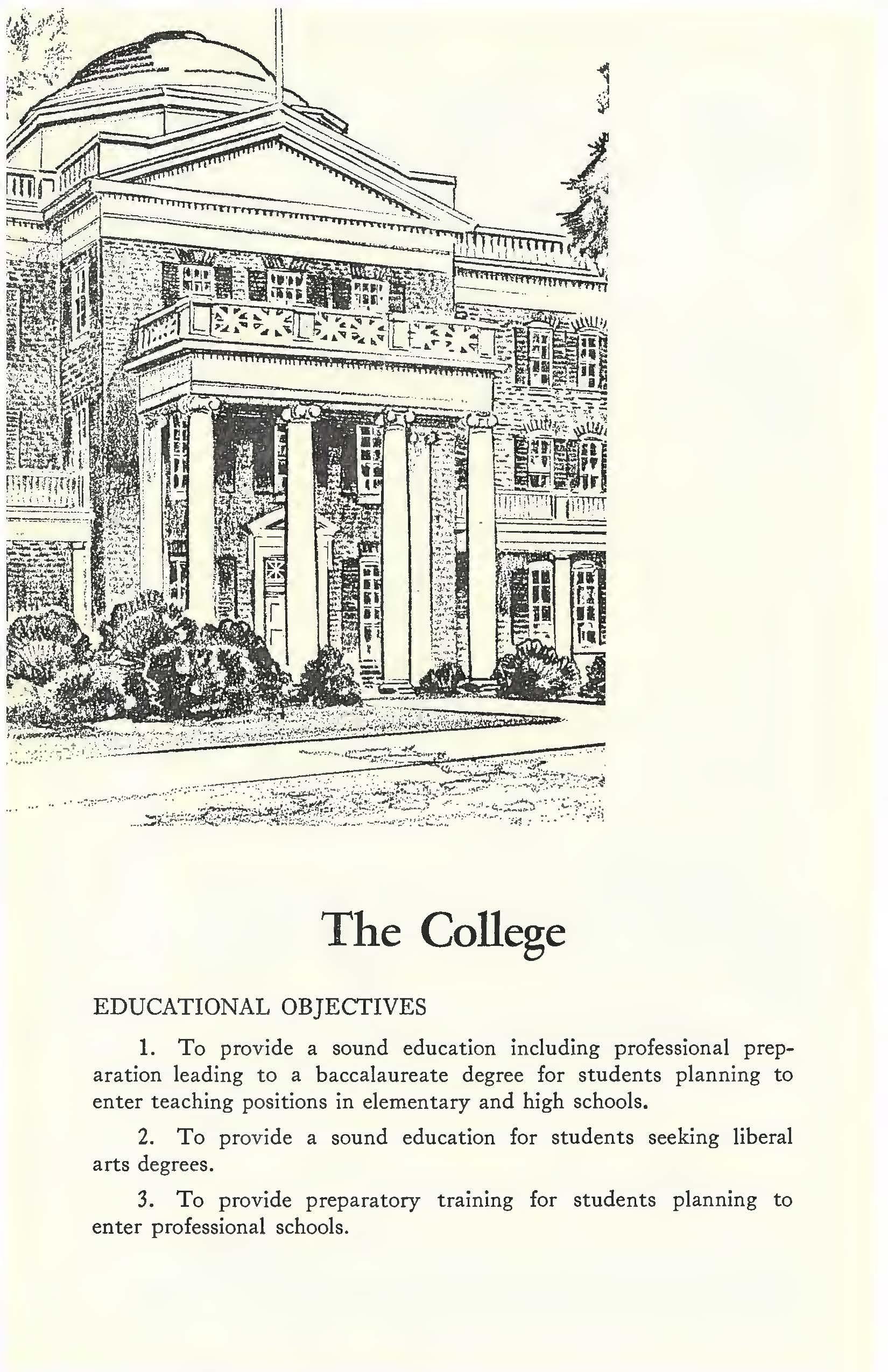 Quality credits..................... 56 Recreation centers.. • • • 21 Refunds........................... 44 Repetition of courses. . . . . . . . . . . . . . . 58 Scholarships....................... 46 Science Laboratories................ 20 Secretarial work. . . . .. . . . . . . • . .. . .. 83 Social regulations.................. 34 Sociology. . • . • • • . • • • • . . . . . . . . . . • . • 101 Sororities. . • • • • • . . • • • . . . • . . . . . . . . • 39 Spanish .••••••••.••••........• ,... 96 Speech .... ,....................... 93 State Board of Education........... 5 Student activity centers • 21 Student Government Association..... 35 Student life on the campus.......... 31 Student load.. • 52 Student organizations. . . . . . . . . . . . . . 34 Student personnel program... • 25 Student teaching .................. 57, 87 Tearoom.......................... 21 Transfer of credits . . . . . . . . . . . . . . . • . 59 Payments......................... 44 Y. W. C. A........................ 36