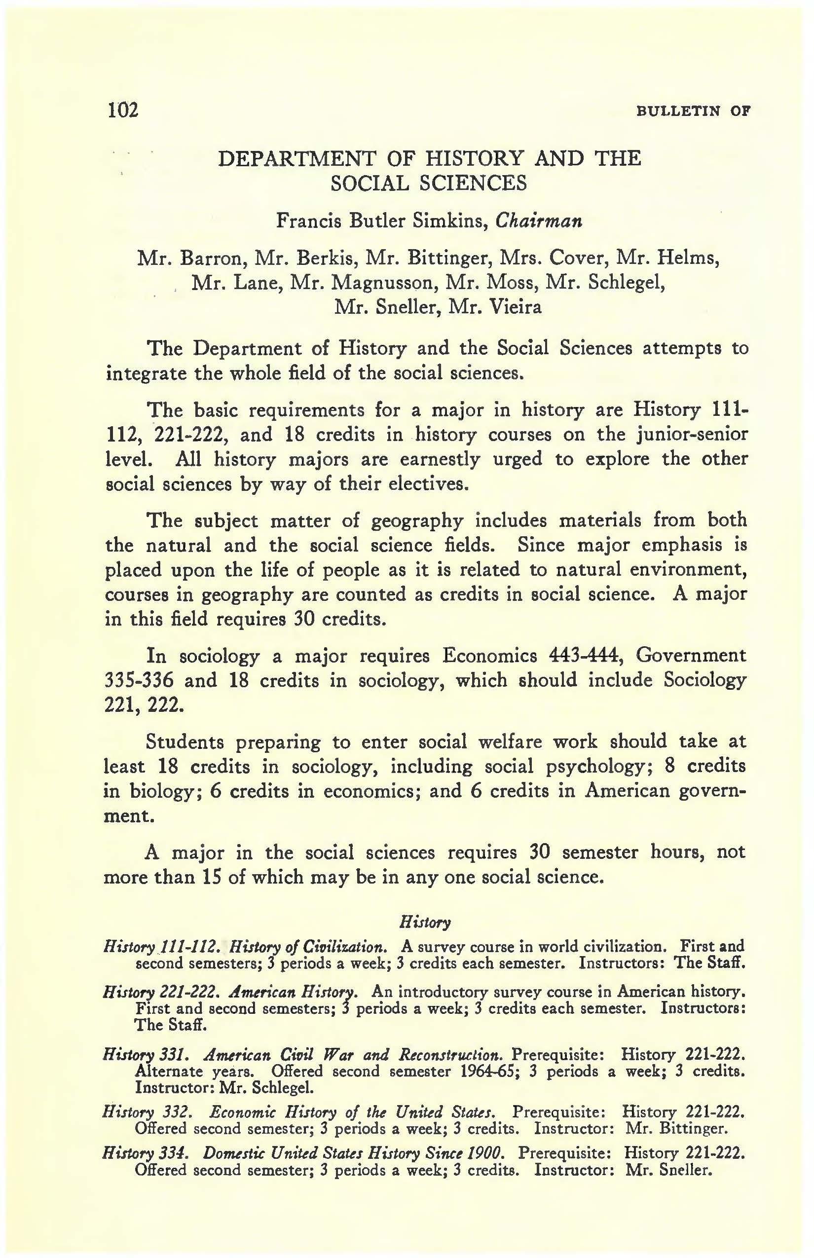 The program of honors courses is administered by the Honors Committee which must approve all students enrolled in such courses and must appoint the sponsors and examining boards. Members of this committee are Chairman, Mr. Brumfield, Miss Curnutt, Mr. Gresham, Mrs. Magnifico, Miss Wells.