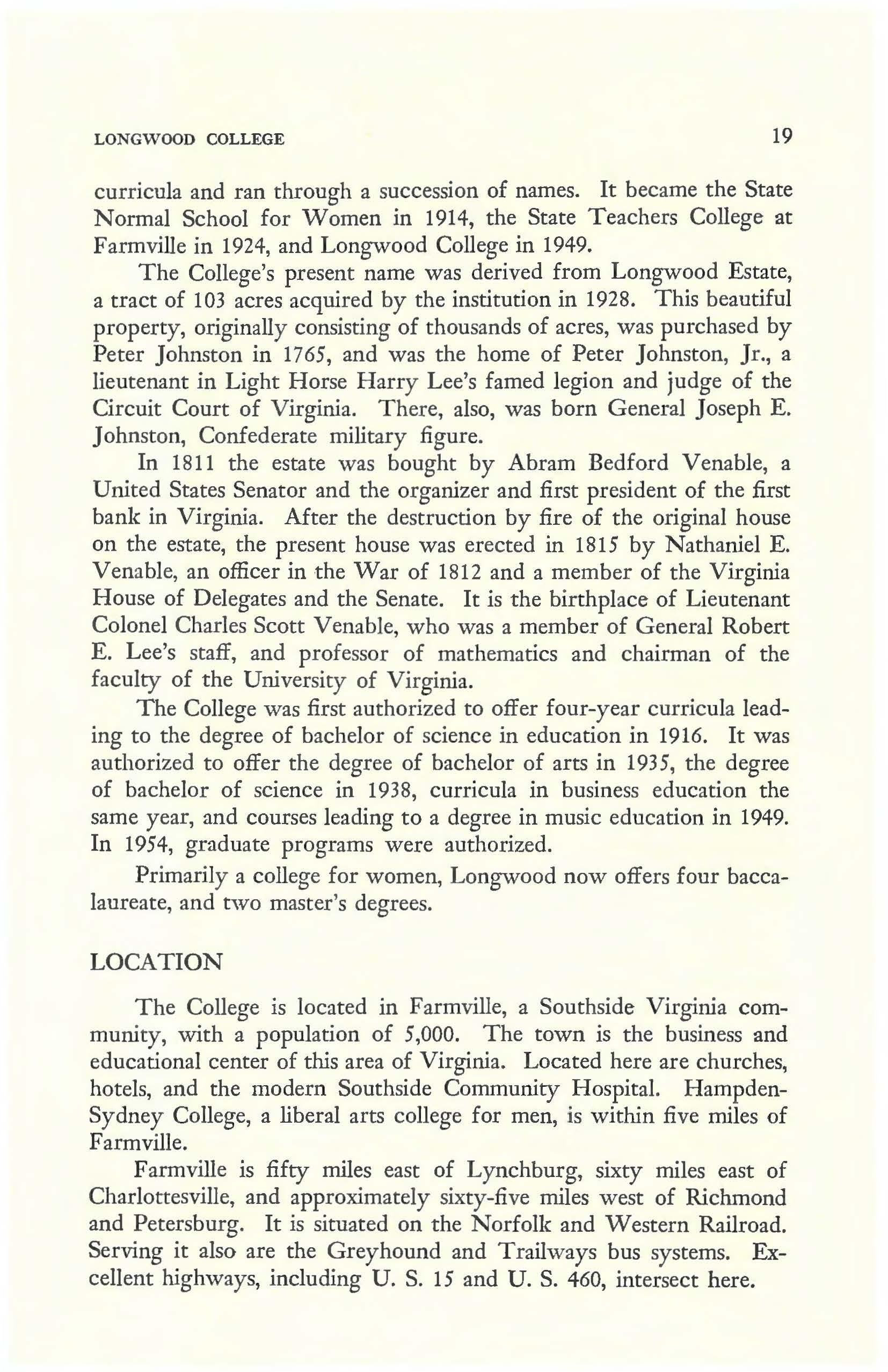 Published quarterly by Longwood College, Farmvllle, Va. Second class malllng privilege authorized at Farmville, Va.