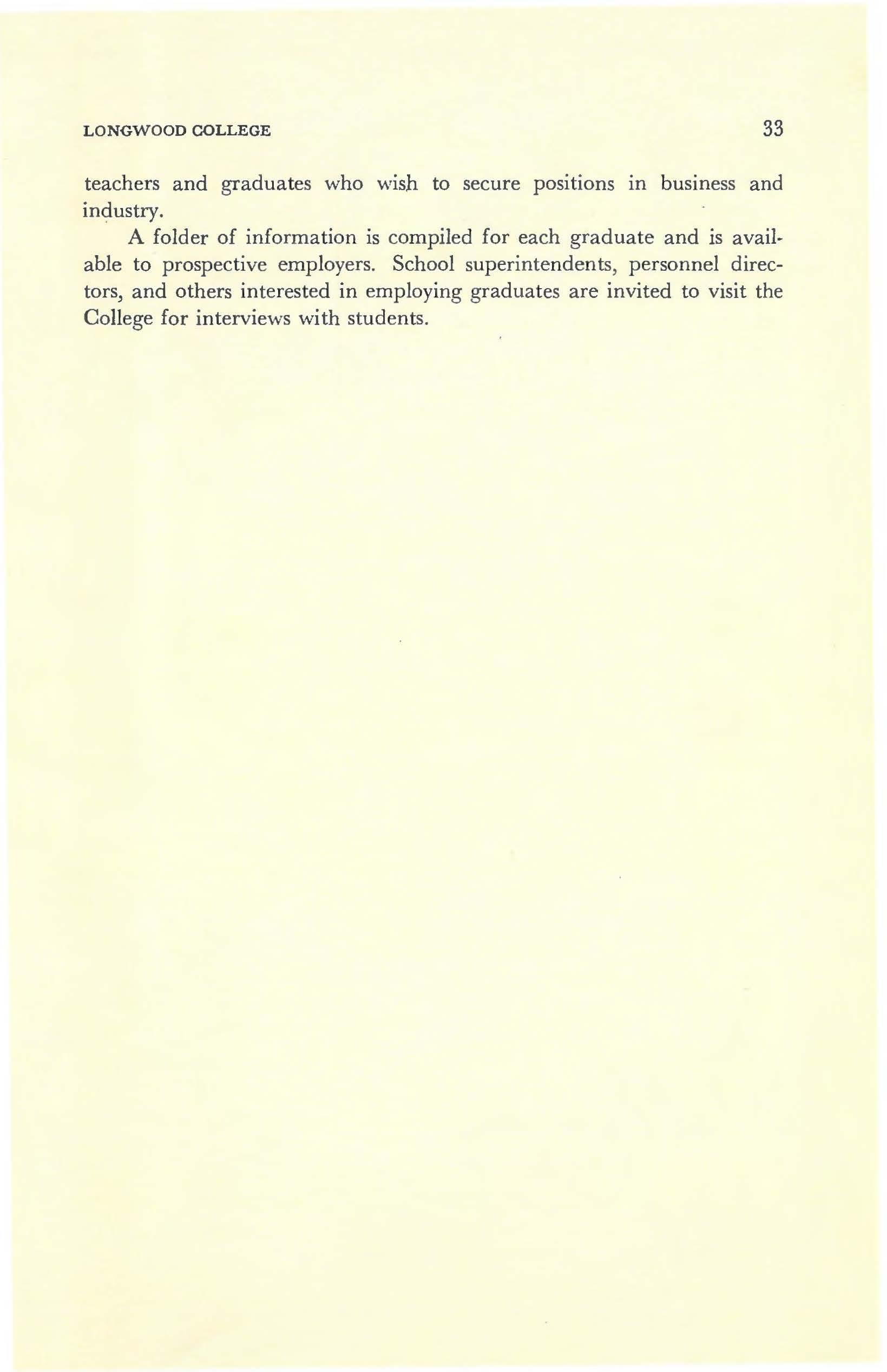 A folder of information is compiled for each graduate and is available to prospective employers. School superintendents, personnel directors, and others interested in employing graduates are invited to visit the College for interviews with students.