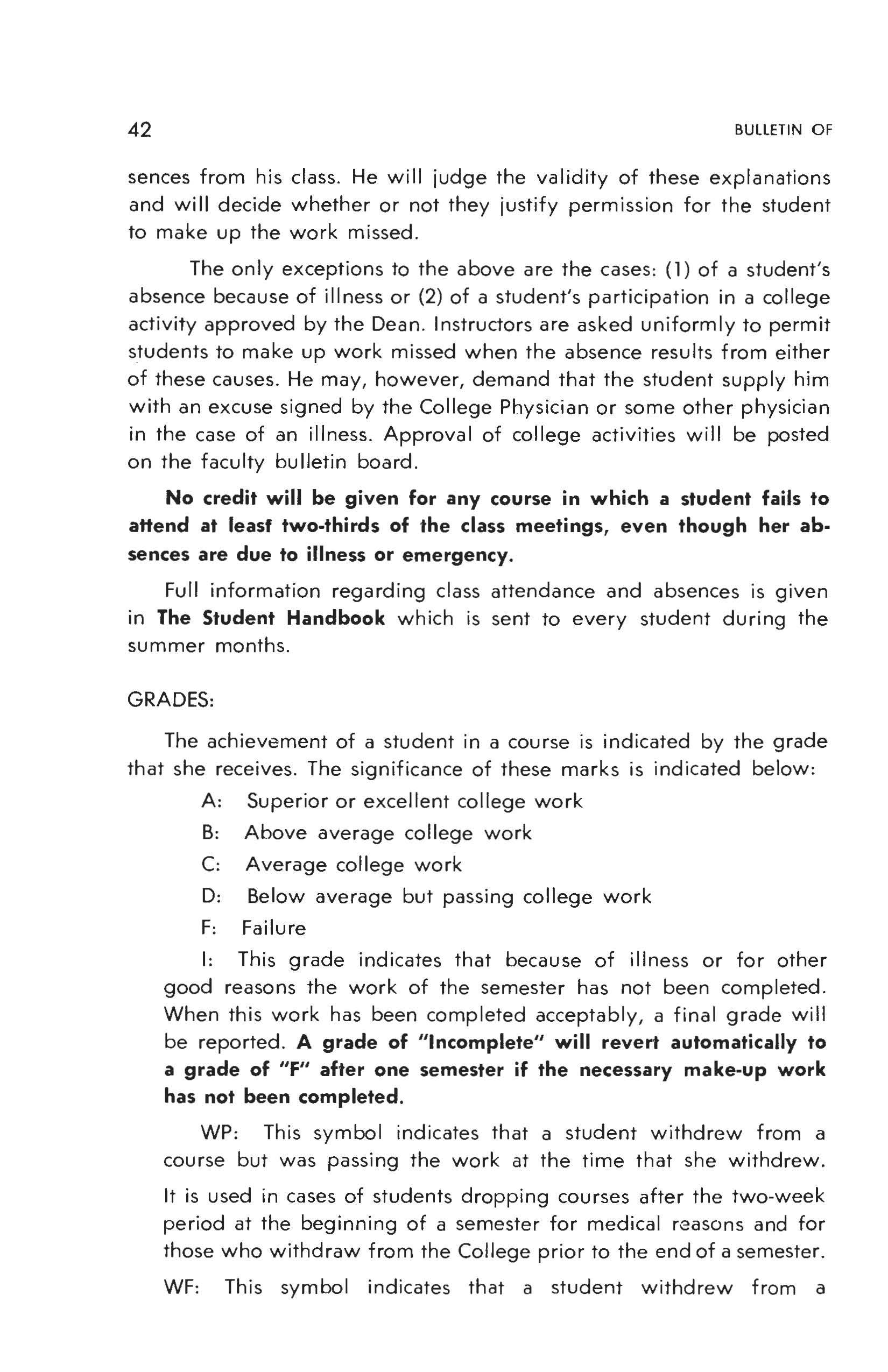 The moral and religious aspects of education are considered as important as are the physical and intellectual. During the history of the College a tradition of good will, cooperation and high standards of personal relationship has developed. Such a stabilizing influence cannot be described; it can be appreciated only through living in the atmosphere it engenders. But this intangible influence is experienced by both students and faculty to such a degree that it has become a distinct moral force in the whole College community.