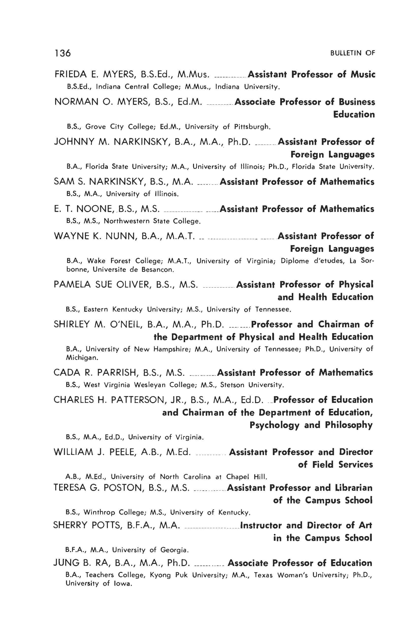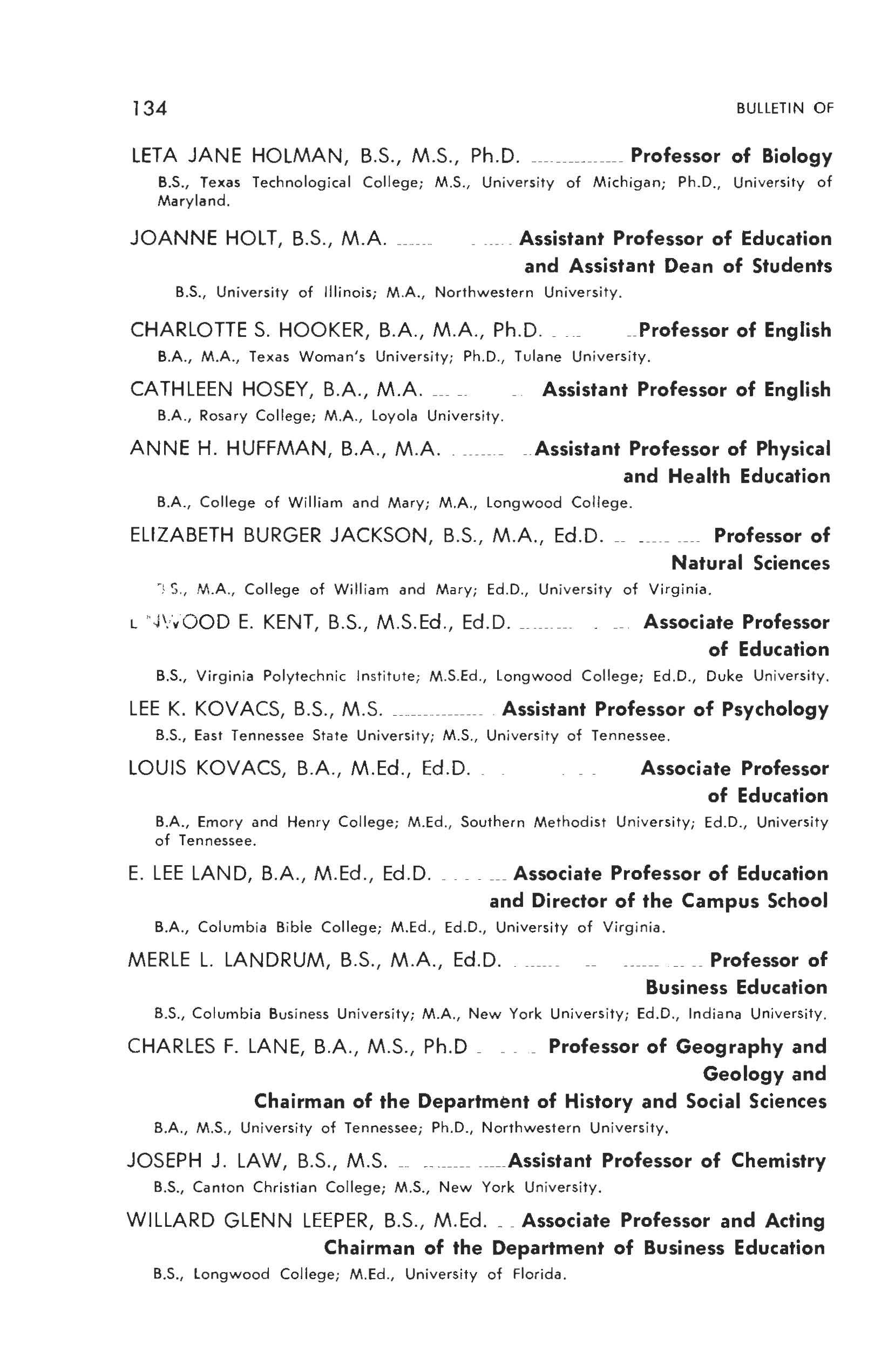 B S , Virginia Polytechnic Institute ; M S., Longwood College.