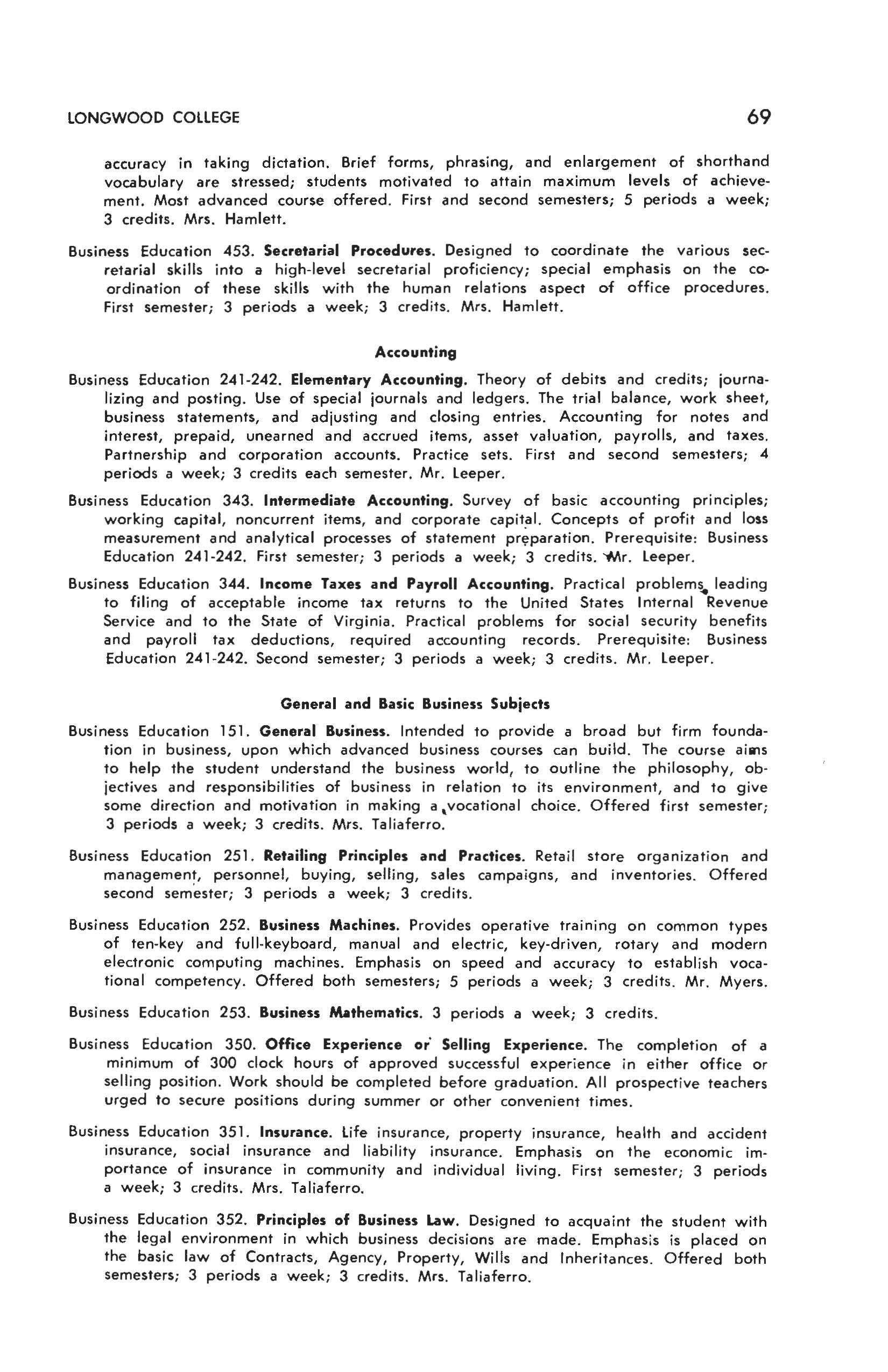 The variety of courses available to Longwood students has been increased by a cooperative arrangement with Hampden-Sydney College. Under the terms of the arrangement, ful 1-time students at either institution may enroll for courses at the other institution without added expense Students desiring to take advantage of this program must secure approval from the Dean of the College