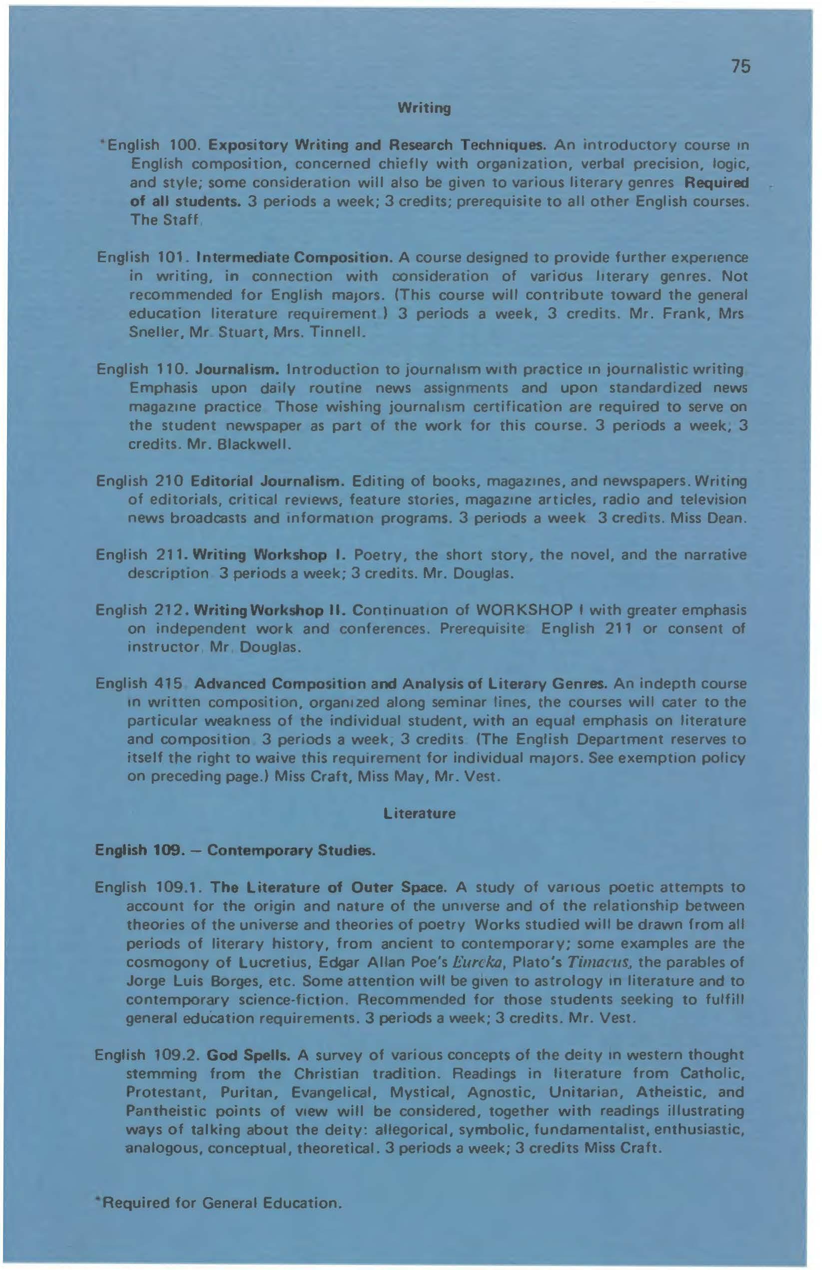 DAVID C. VEST, A.B., M.A. . . . . . . . . . . . . . Assistant Professor of English A.B., Birmingham-Southern College; M.A , Vanderbilt University.