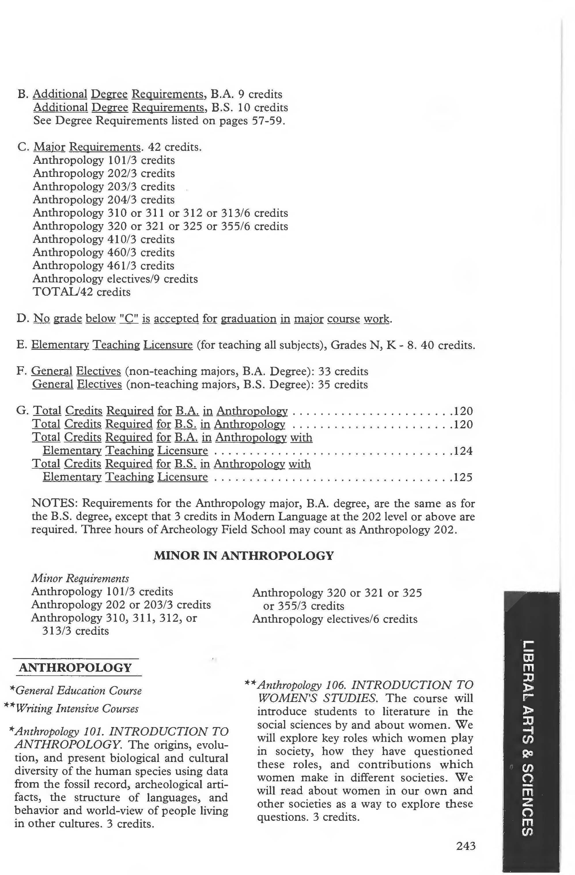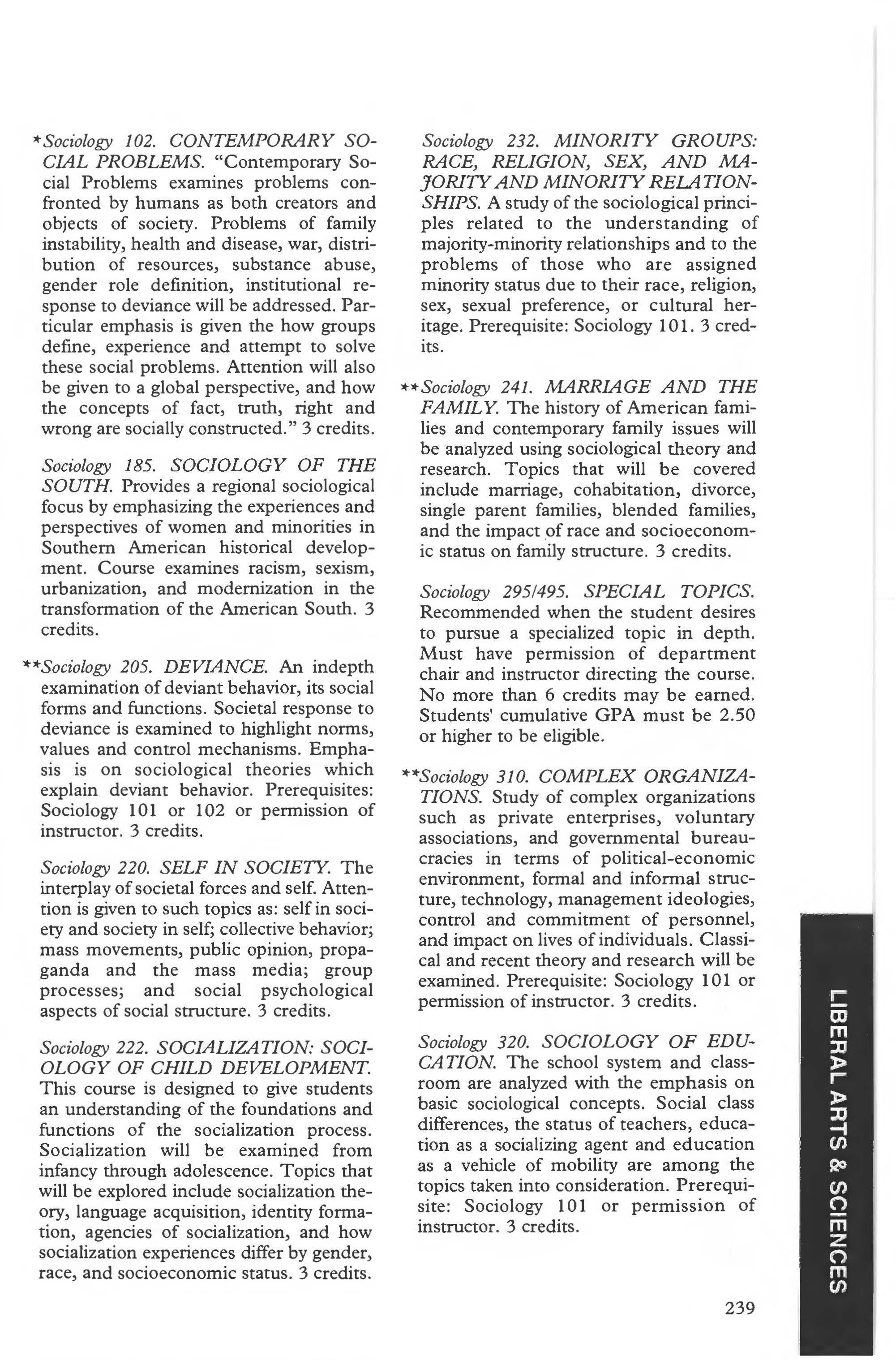 Sociology Minor . . . . .. . . . . .. . .238