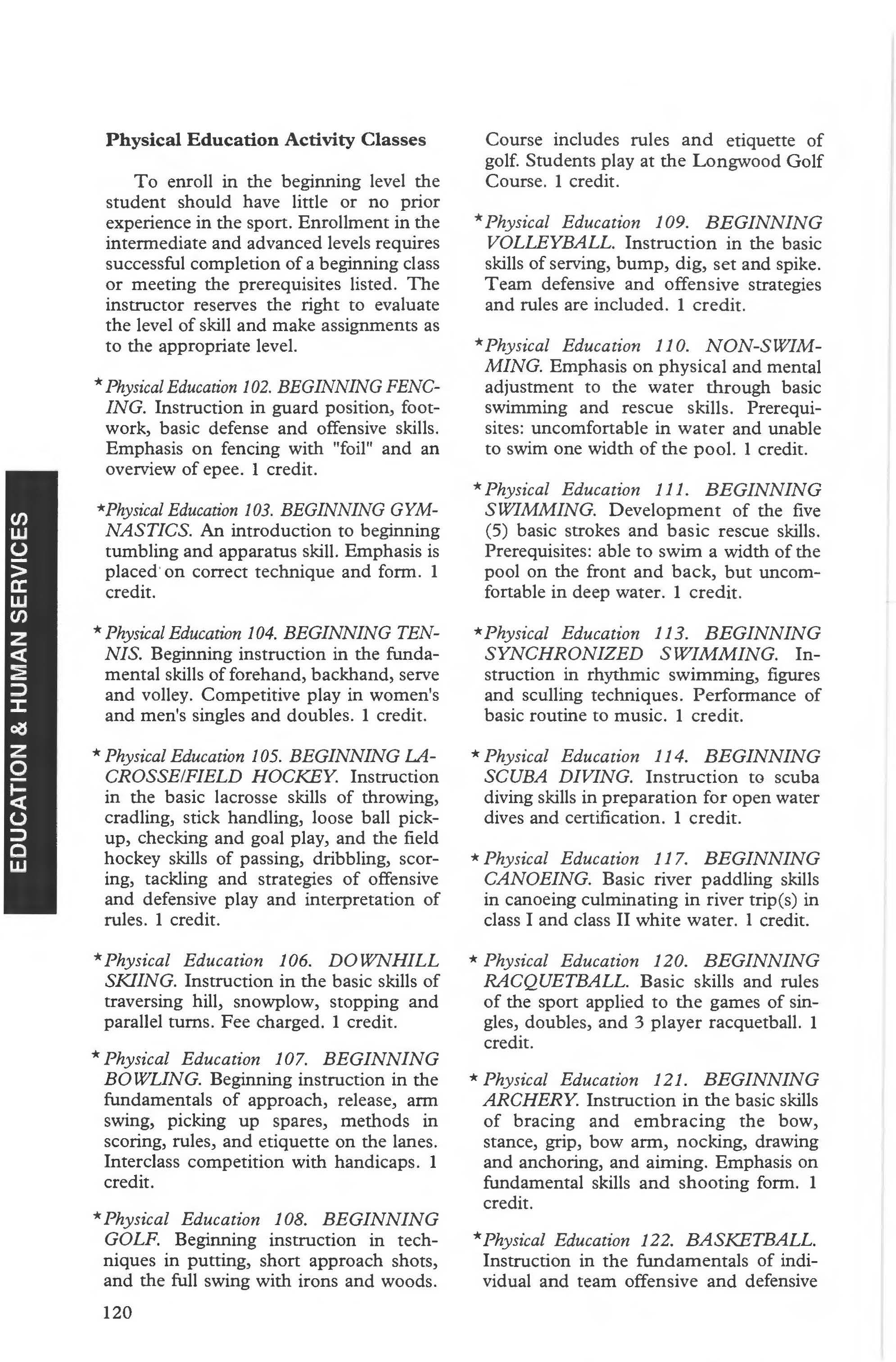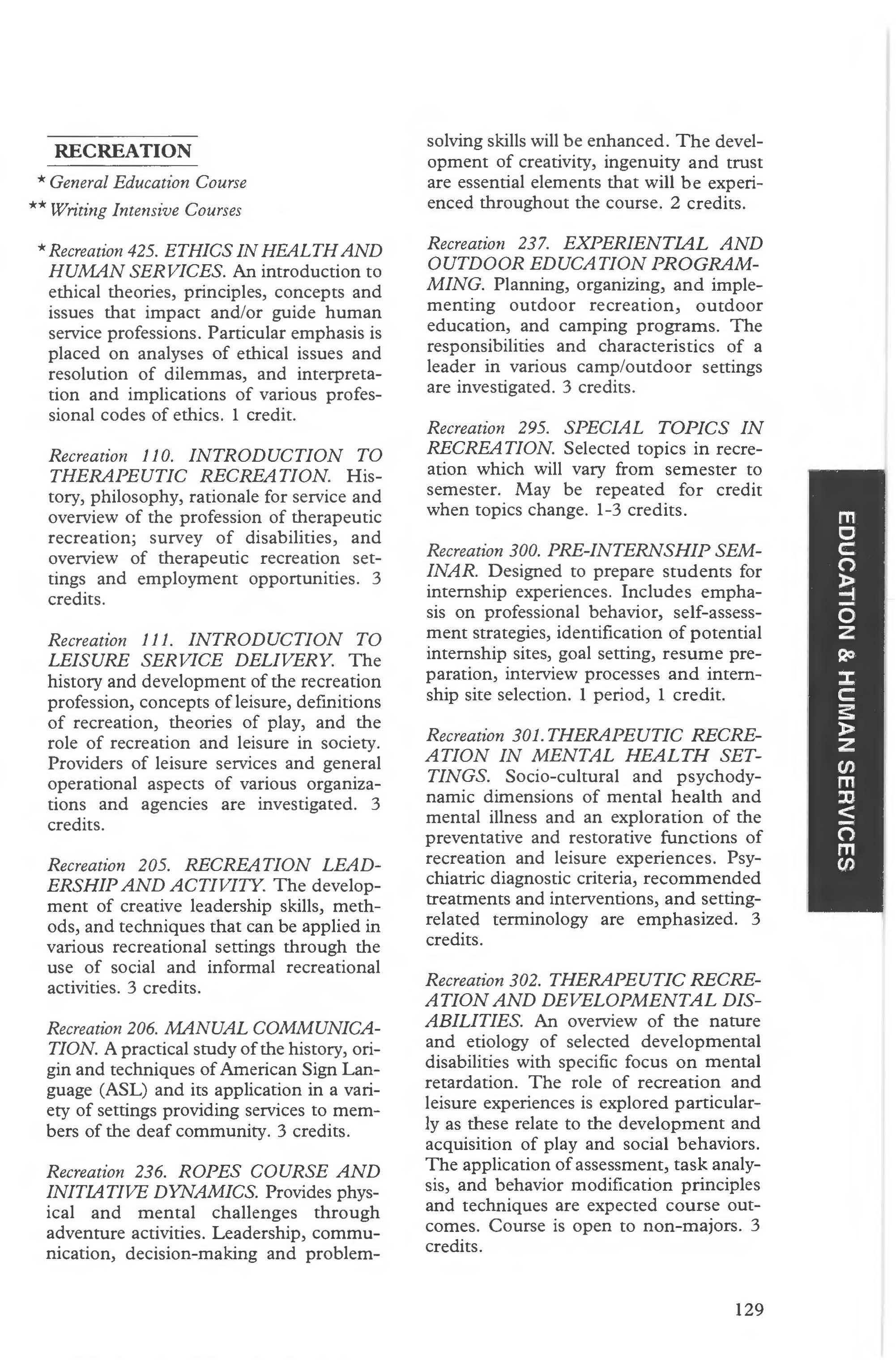 Readmission 14-15 Recreation Courses 129-131 Recreation Program 129