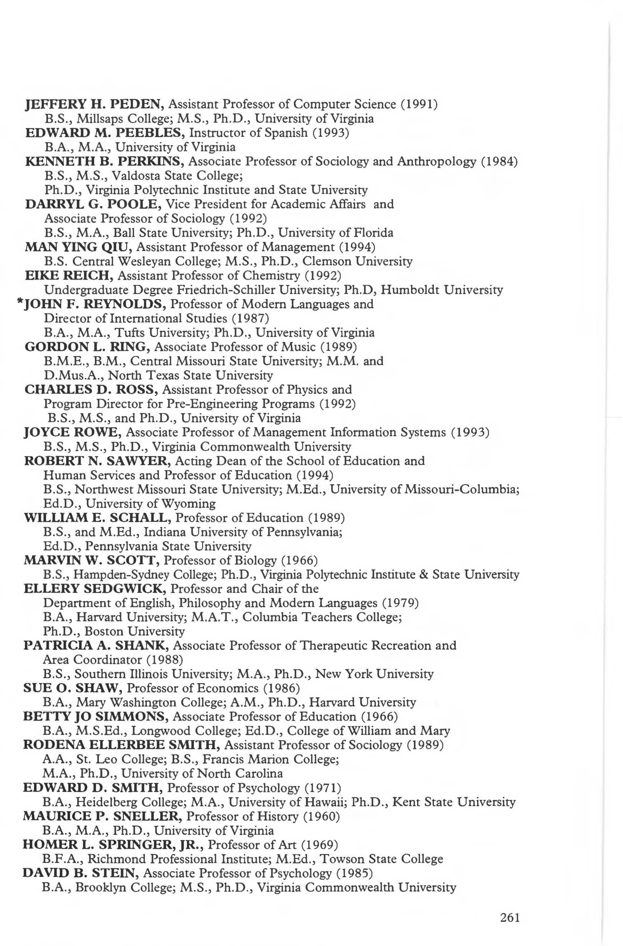 The primary educational objective of Longwood College is to provide a baccalaureate and graduate degree curriculum distinguished by academic excellence. Essential to the goal of academic excellence is a faculty committed to the highest standards of teaching and research and/or creative arts.