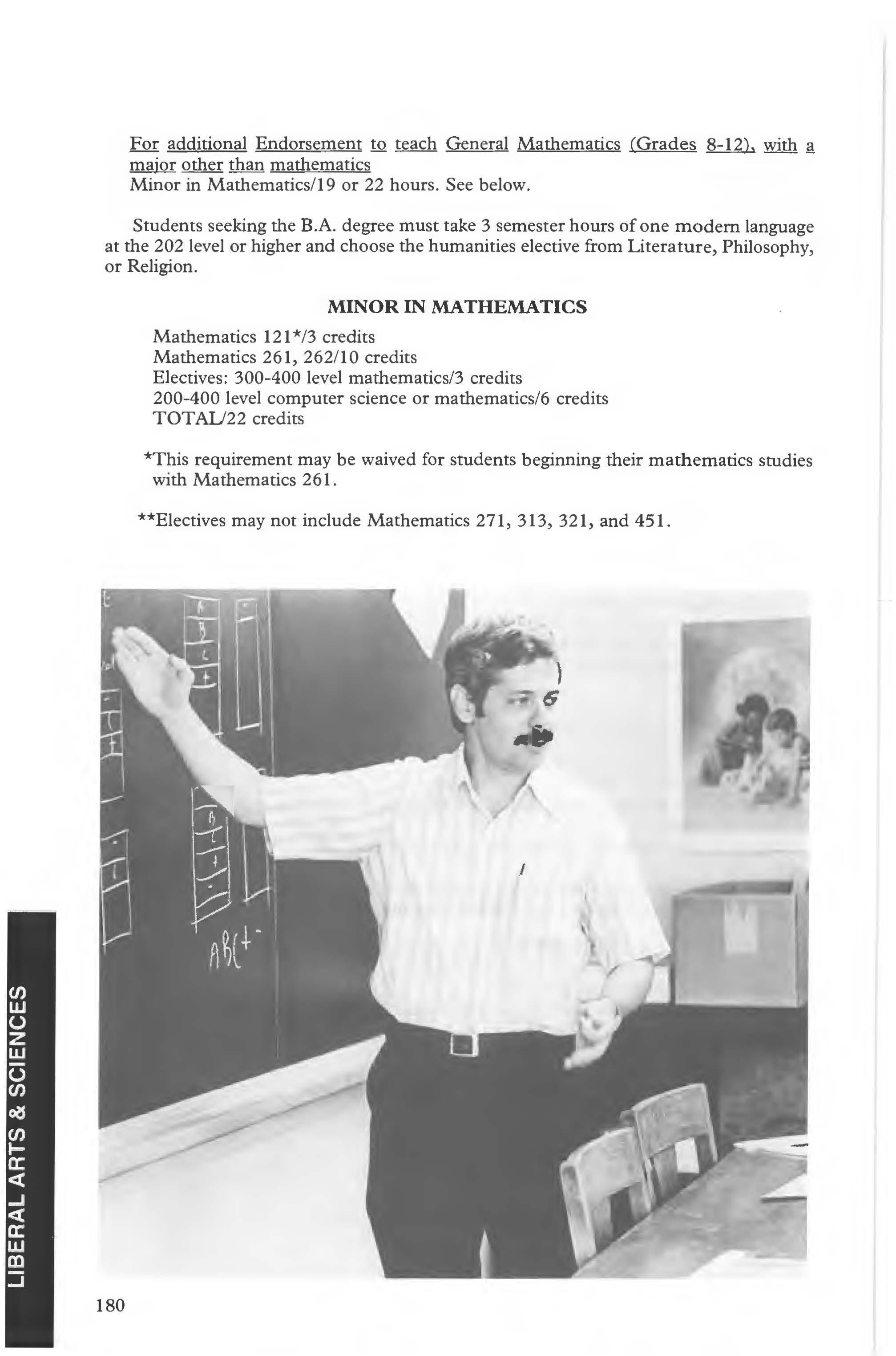 Mathematics Major, B.A., B.S. Degree ...... . . . . .. 179-180 Minor in Mathematics ... . .. . . 180