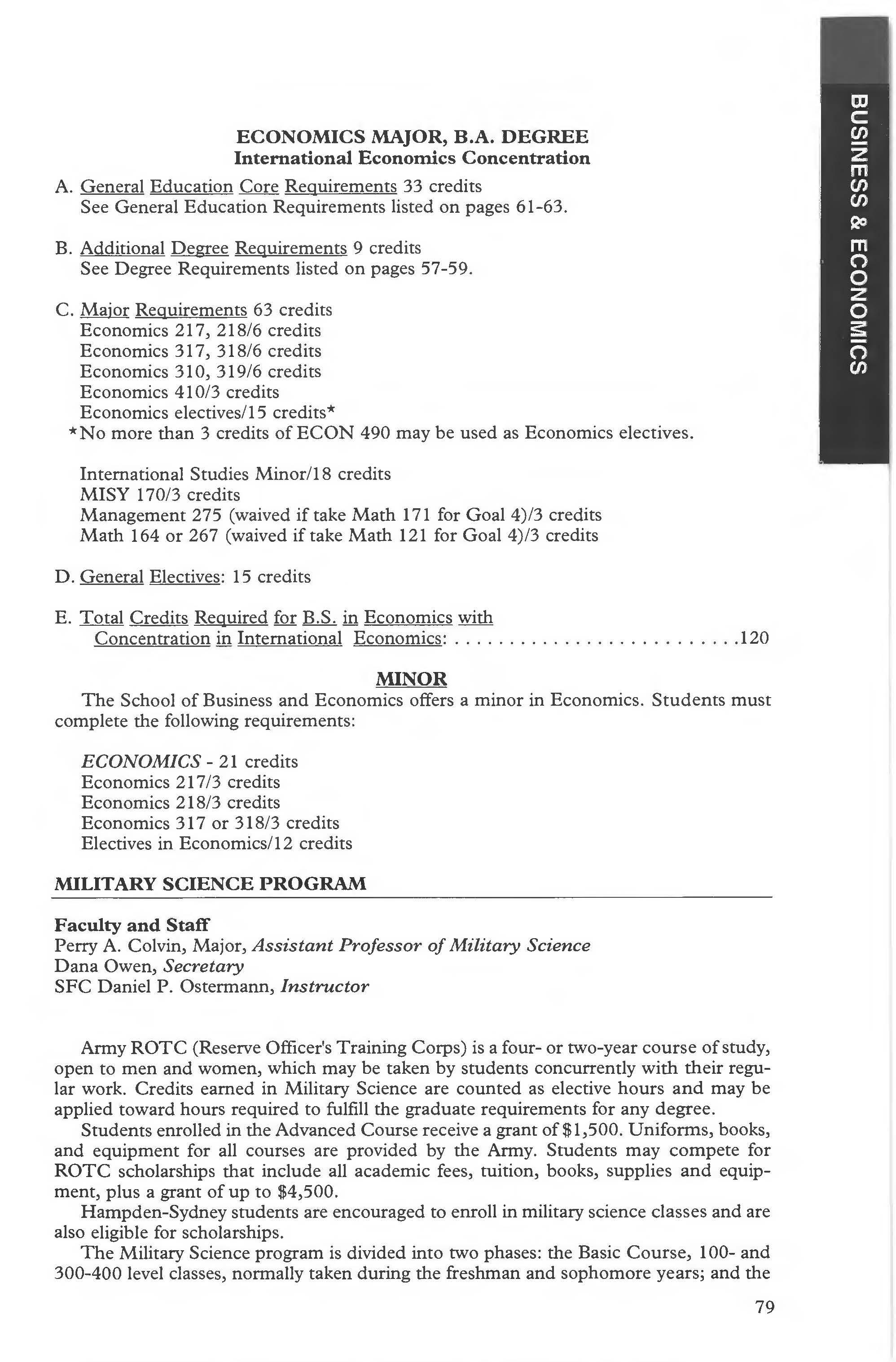 Military Science Program .... . .... 79 Minors .............. . .. ... .. 55