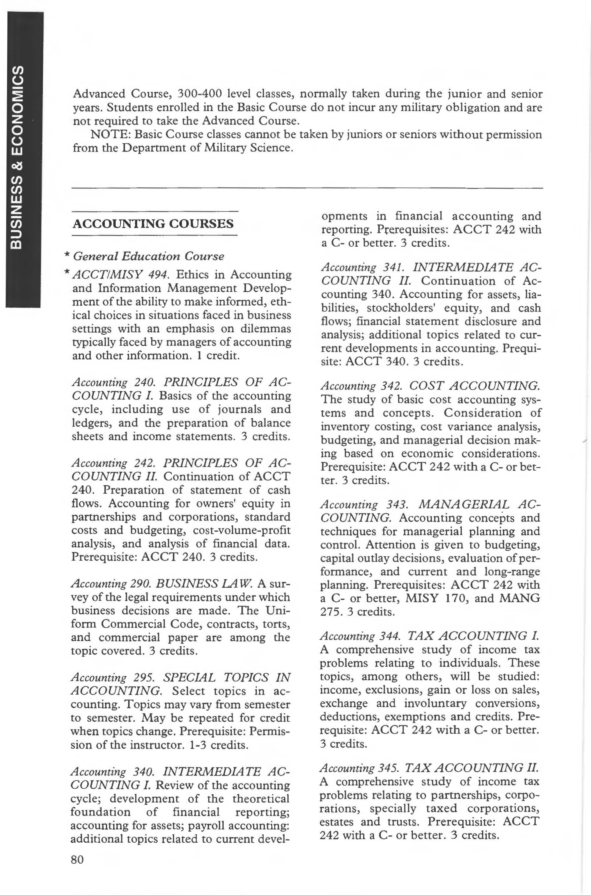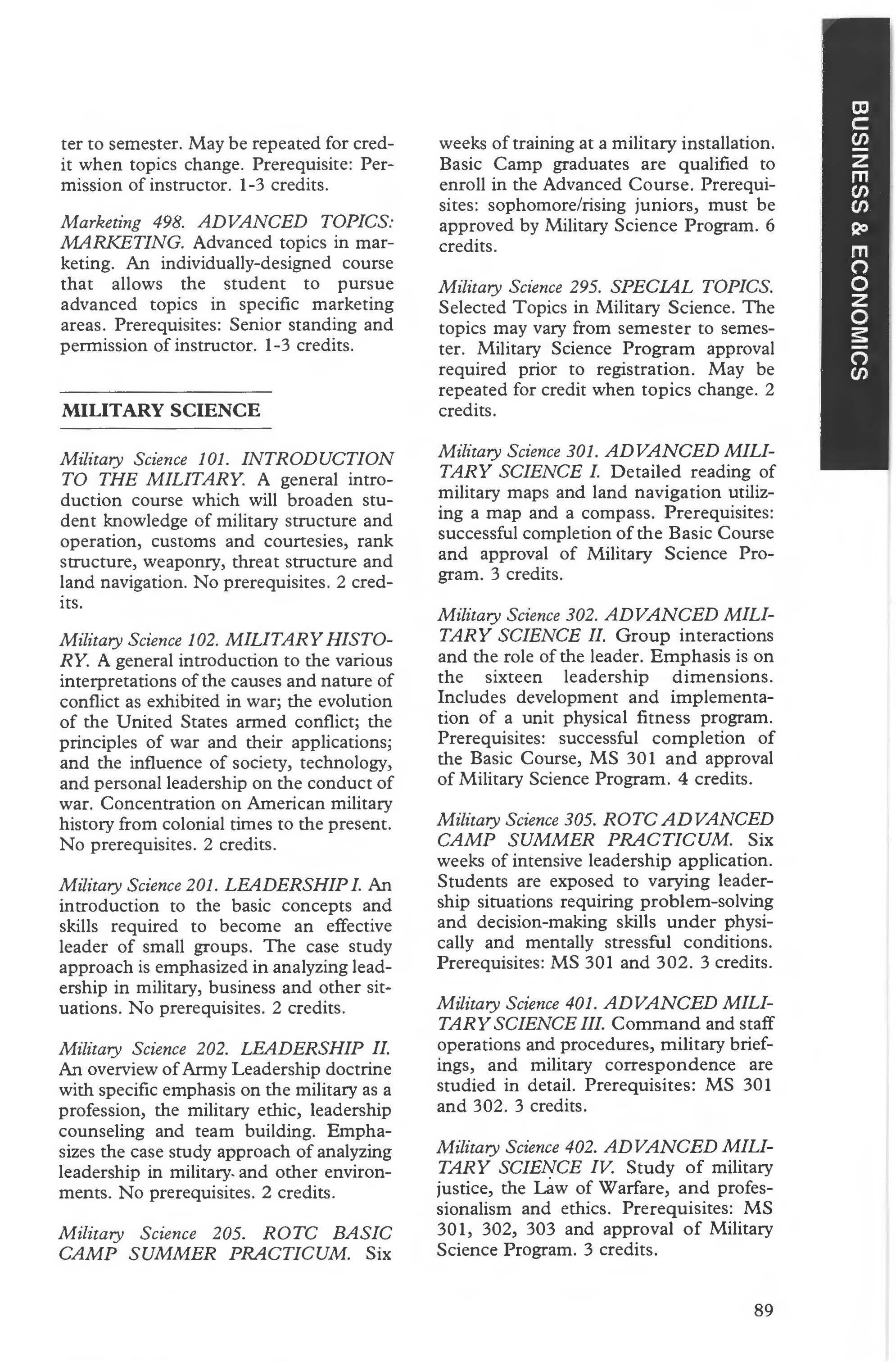Military Science Courses .... ... 89-90