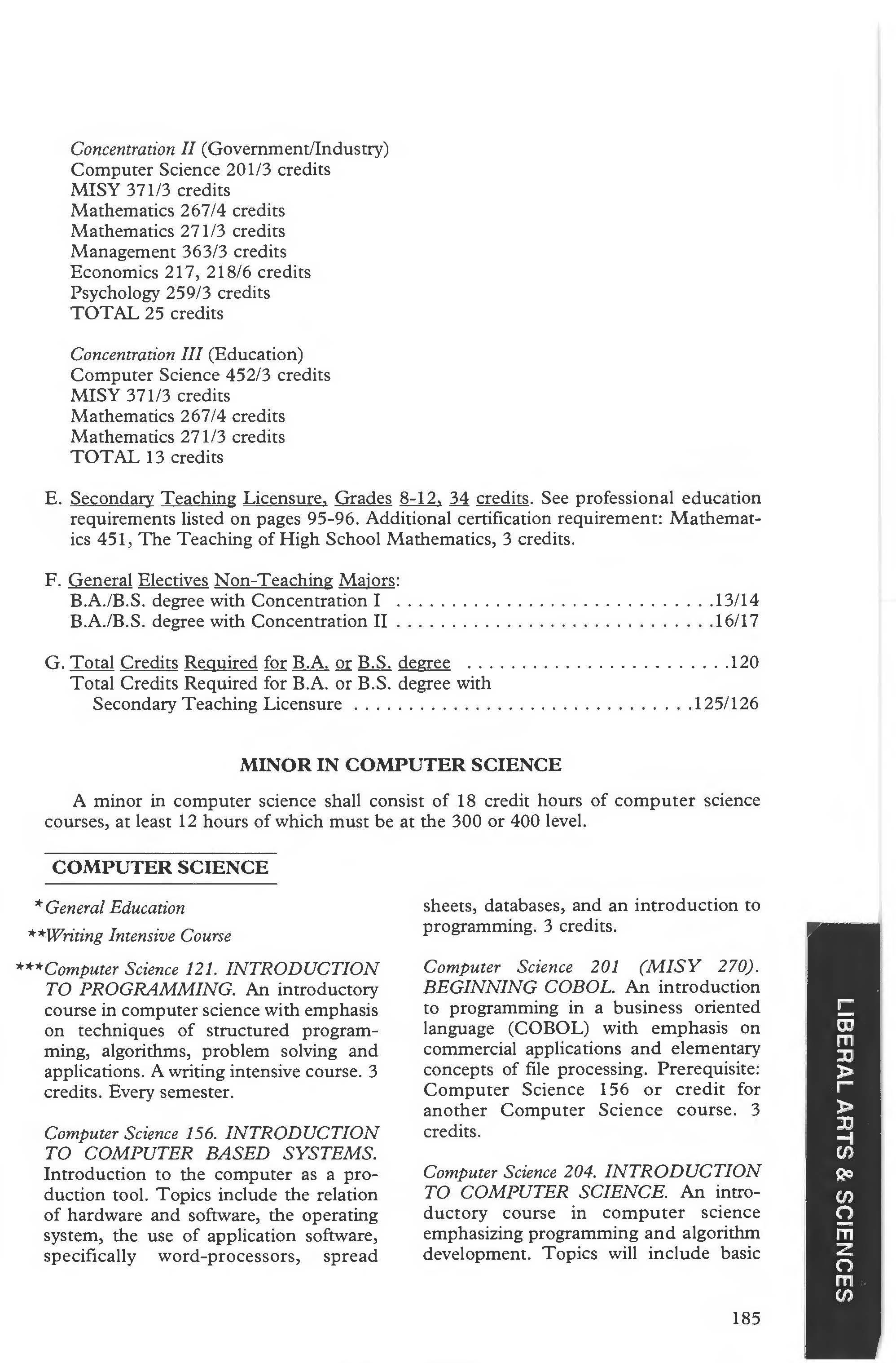 Minor in Computer Science .. . . 185
