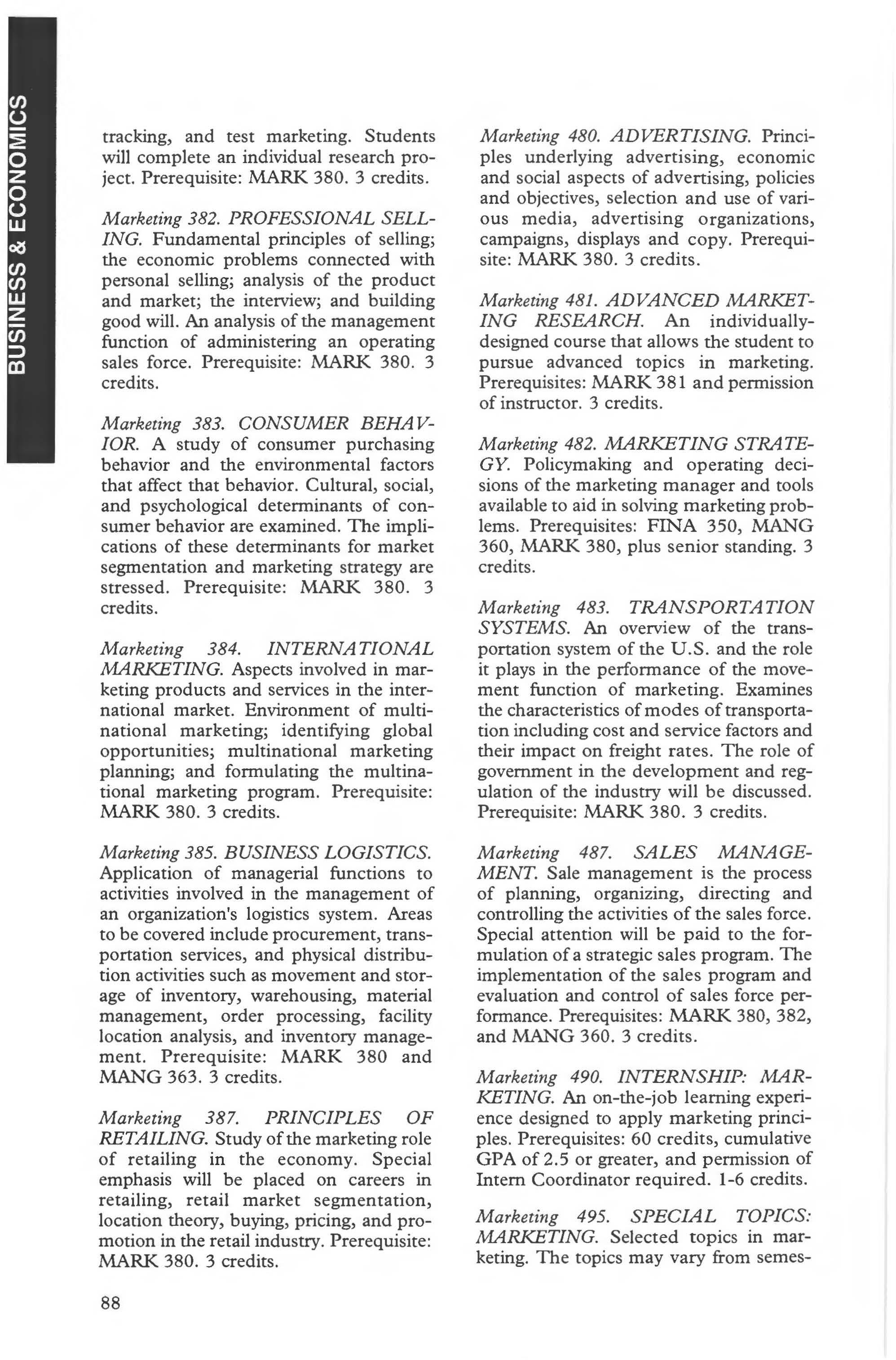 Marketing Courses ....... . . . . 87-89