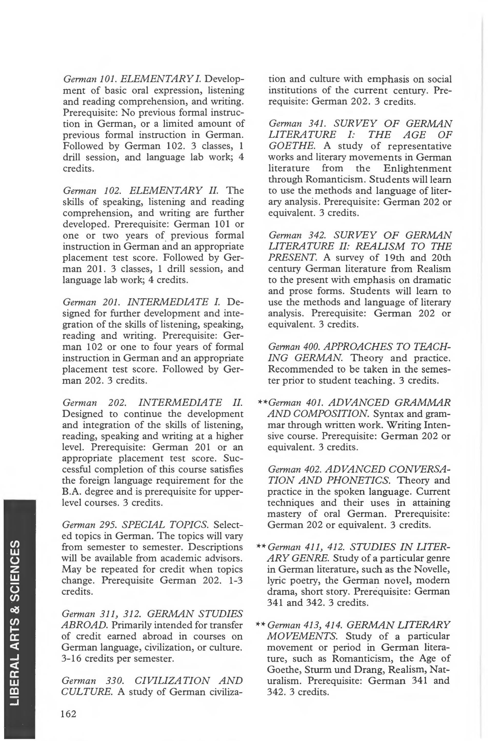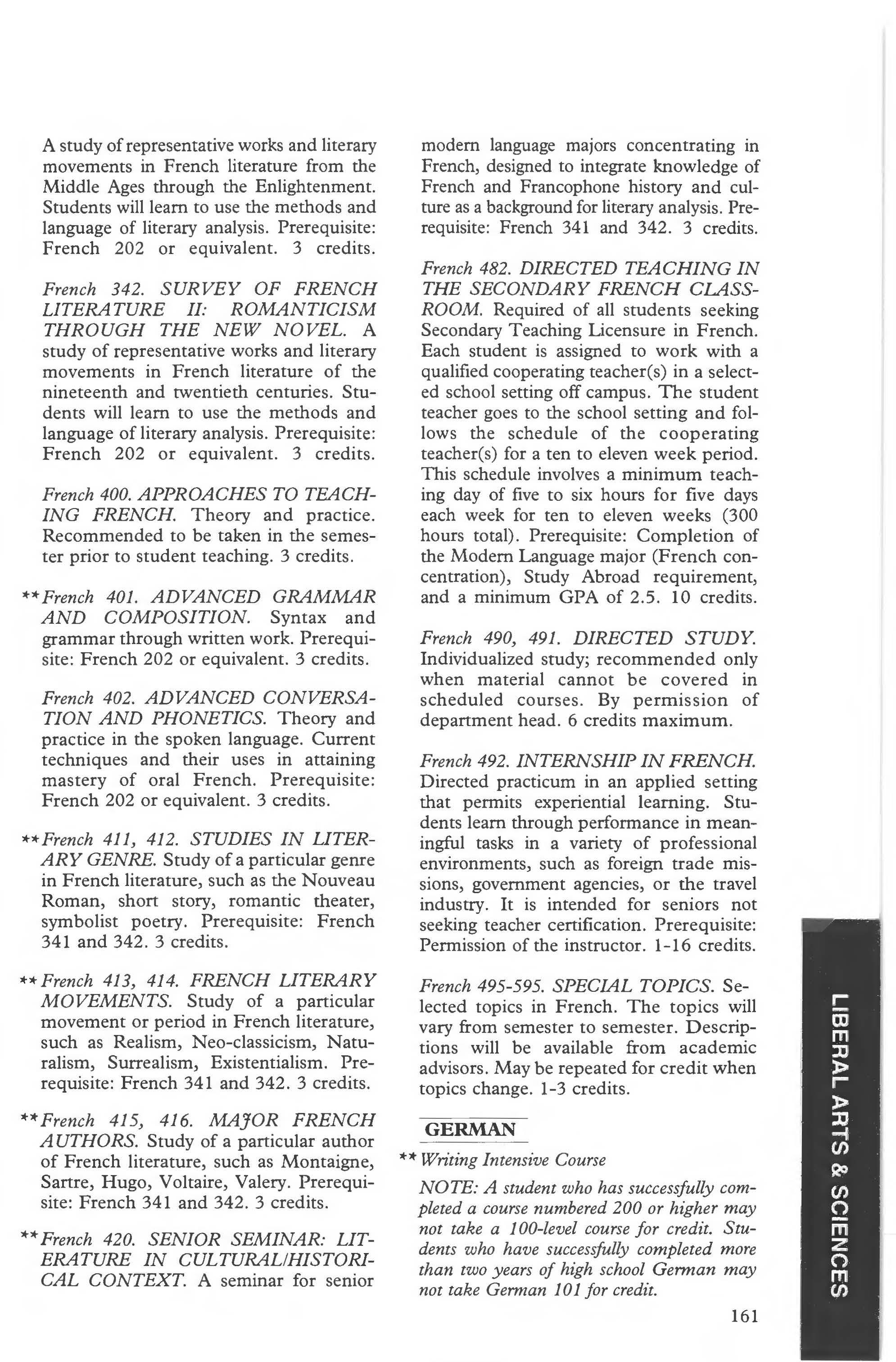 Modern Languages Major, B.A. Degree 159-160 Minor in French, German or Spanish 160
