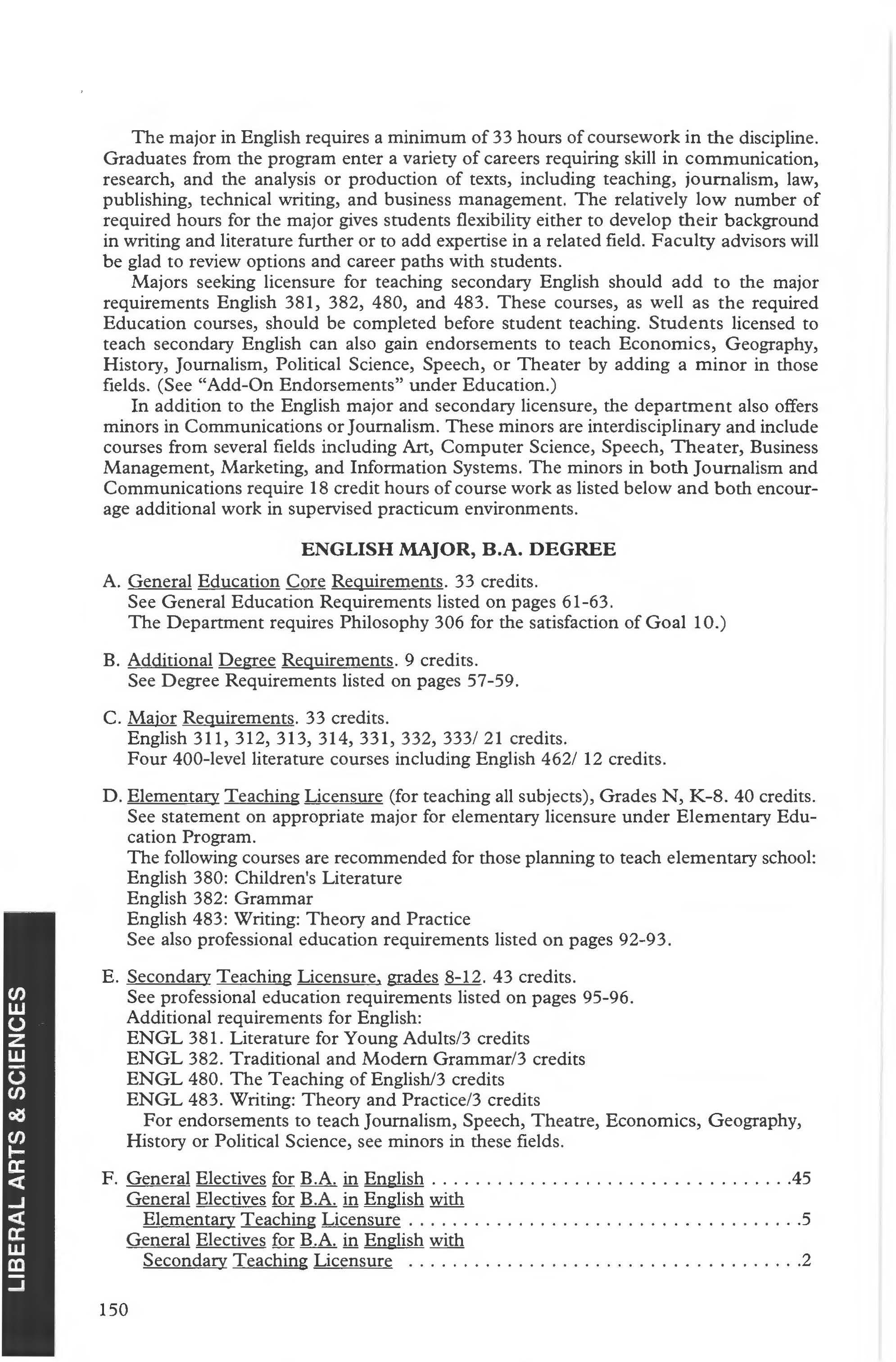 Liberal Studies Major ..... . . 136-13 7