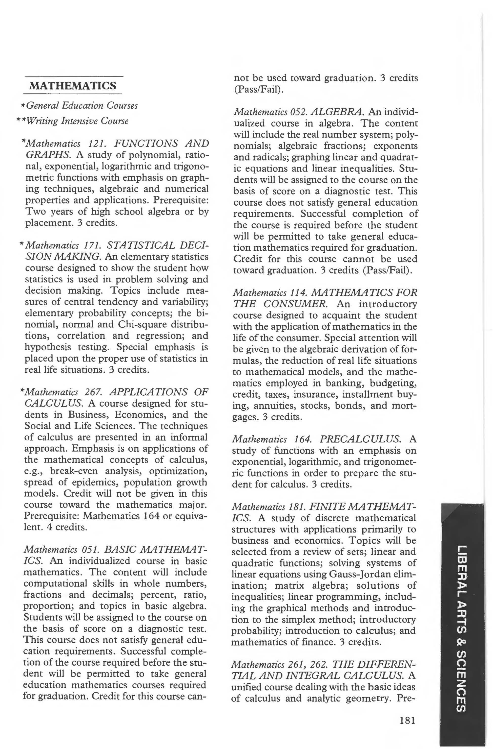 Mathematics Courses . . .. . .. 181-184