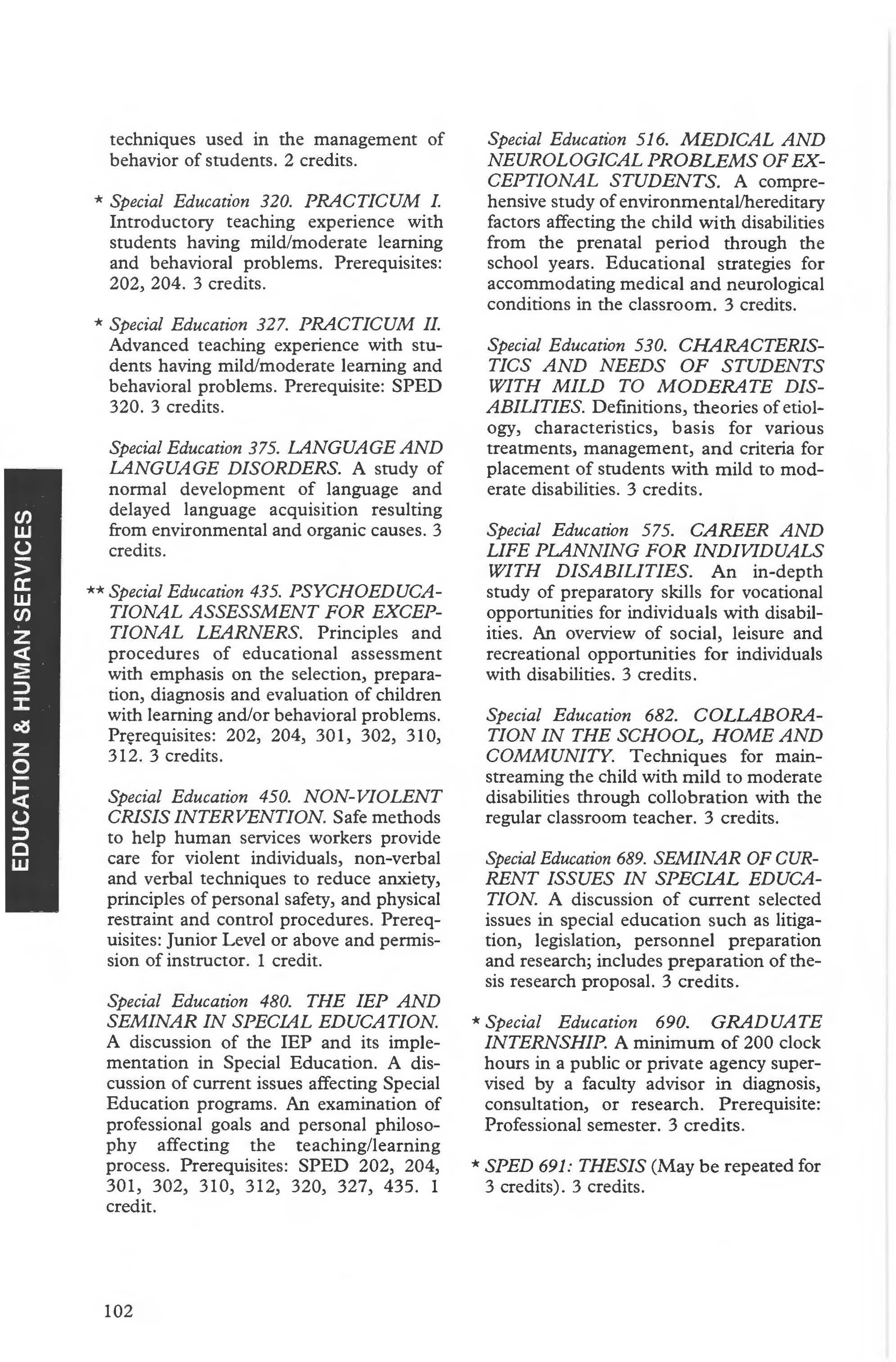 Liberal Studies-Special Education Program ....... ... .... . 100-101