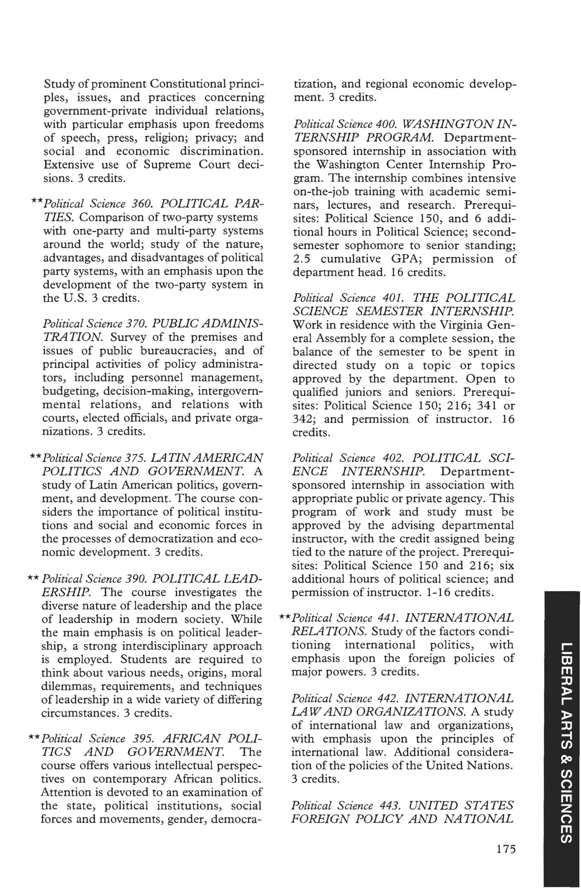 School of Liberal Arts & Sciences .. 131 Science Courses ............... 211