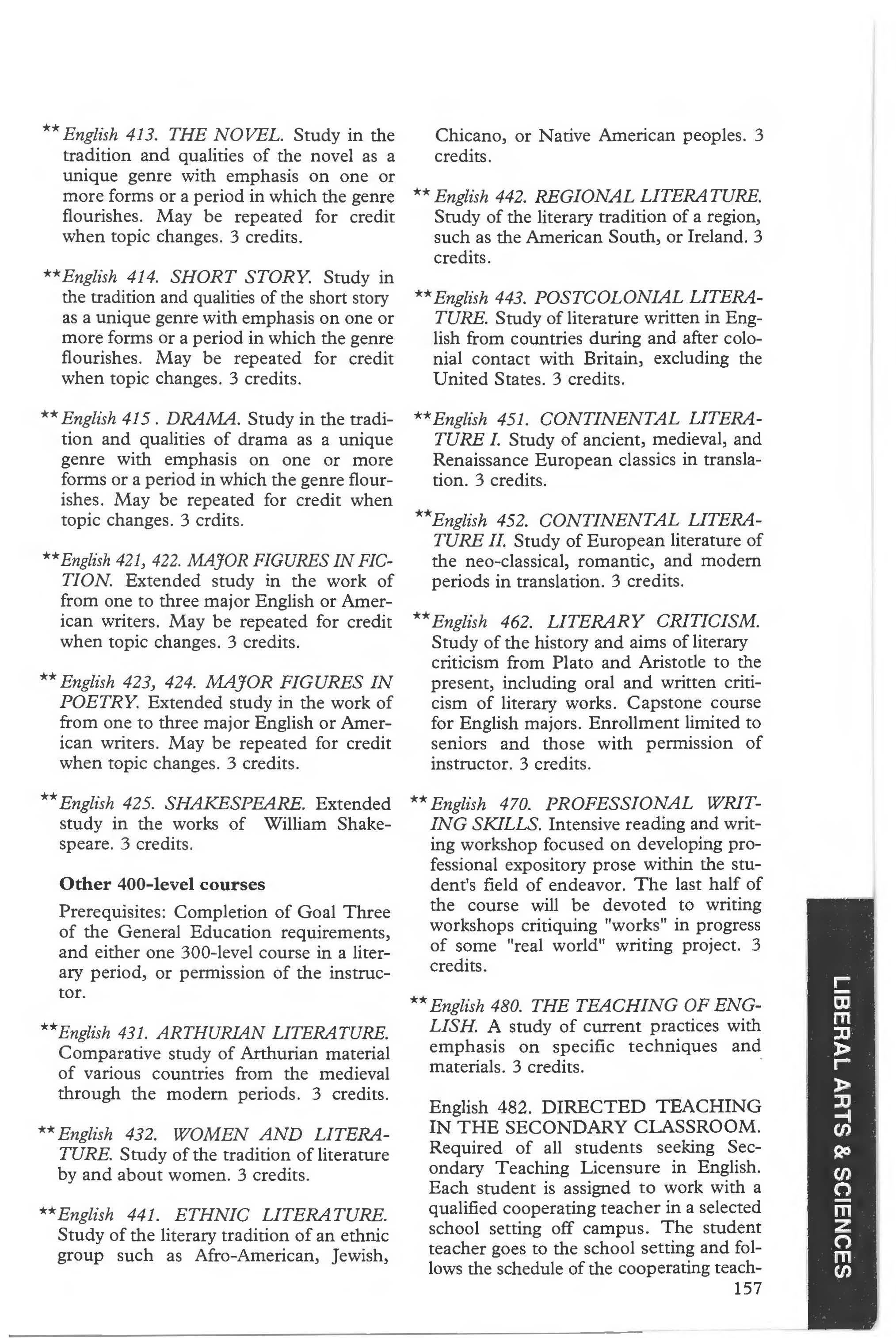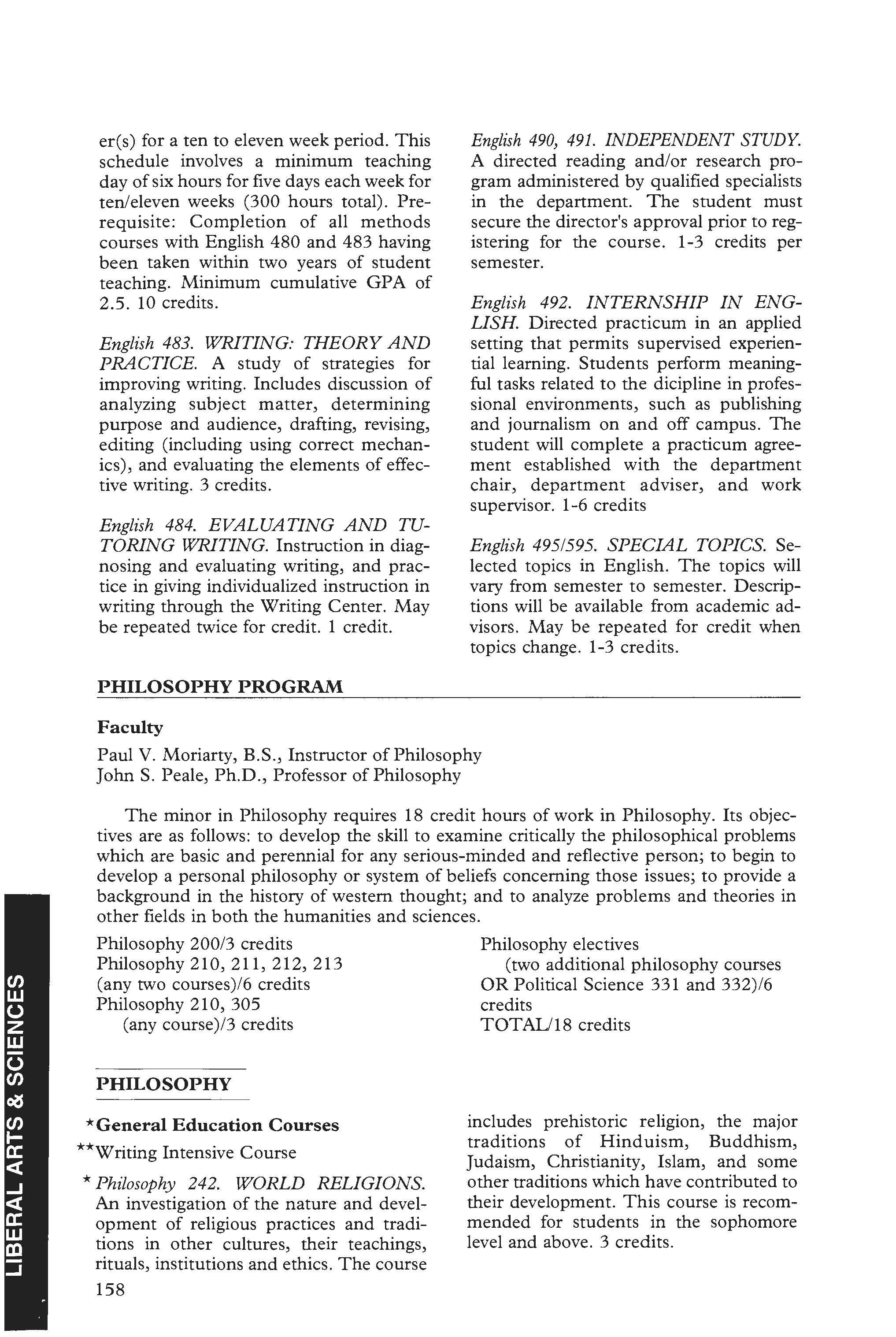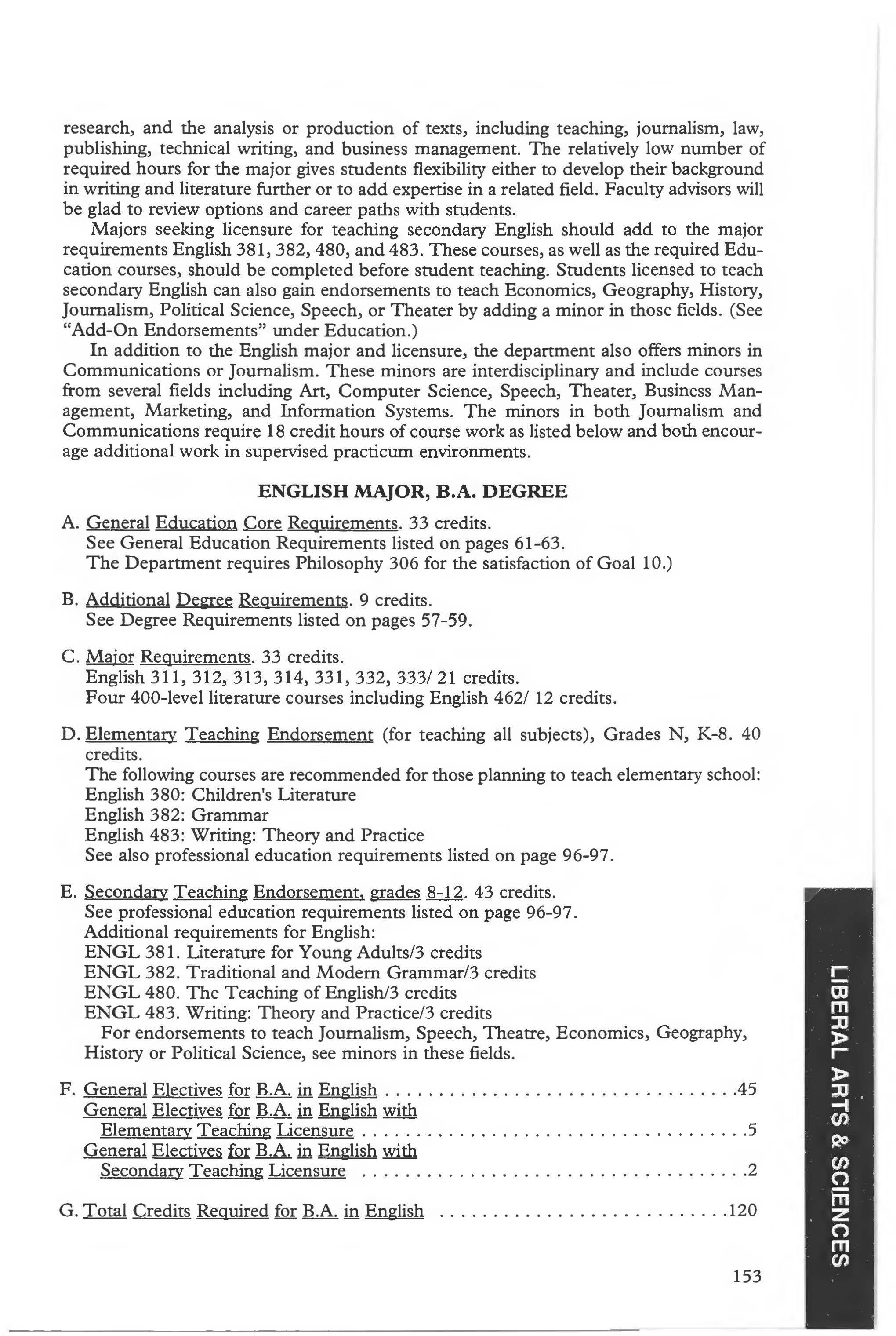 English Major, B.A. Degree .. ..... 153 English, Minors . ...... . . .. . . .. 154 English, Philosophy & Modern Languages, Dept. of .. ........ 152 English Proficiency . . . . . . . . . .. .. .42
