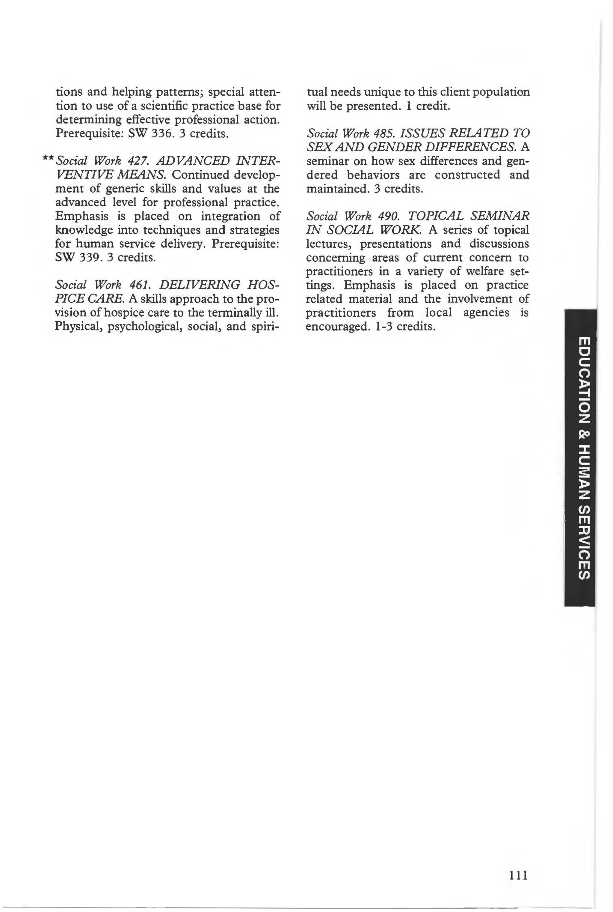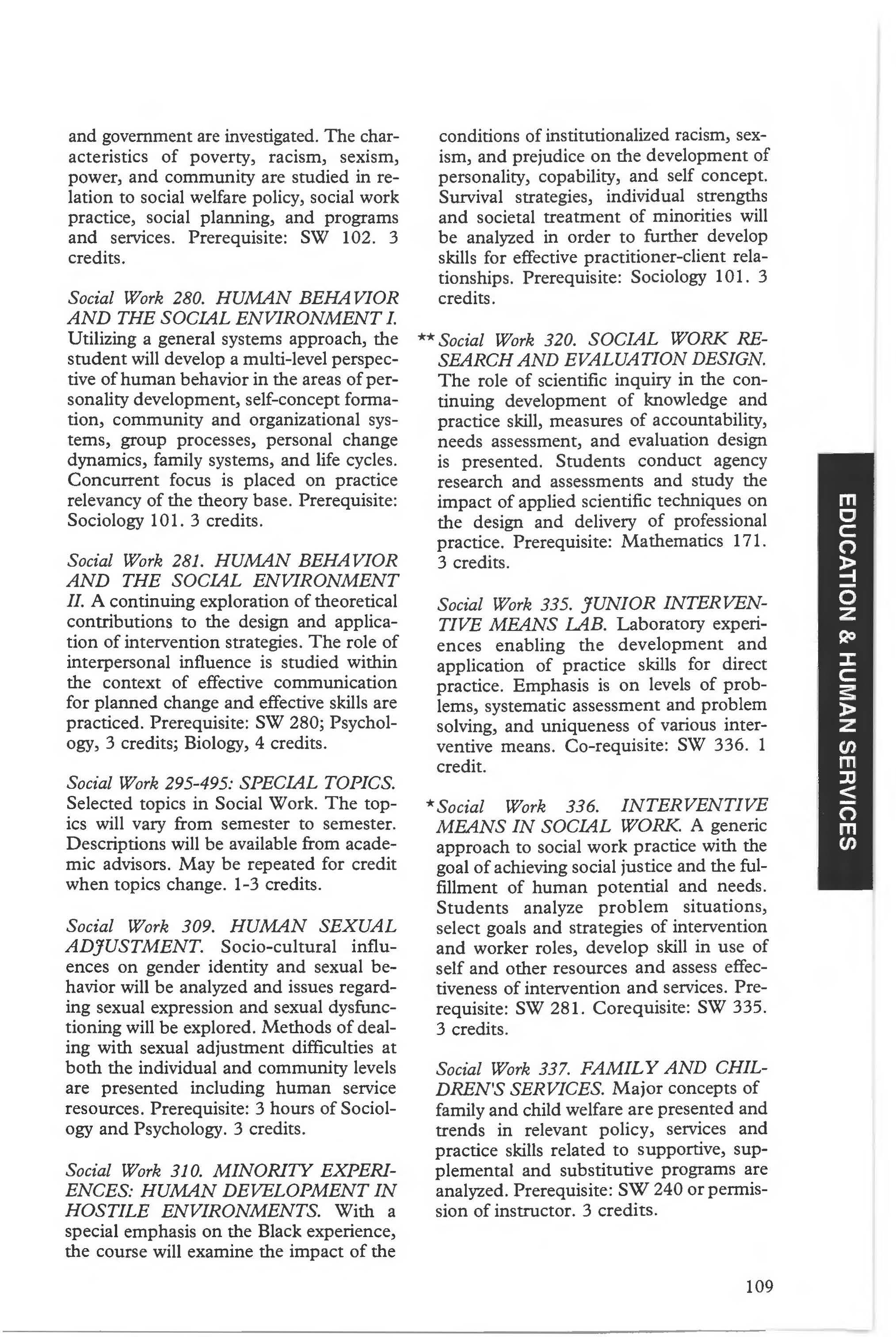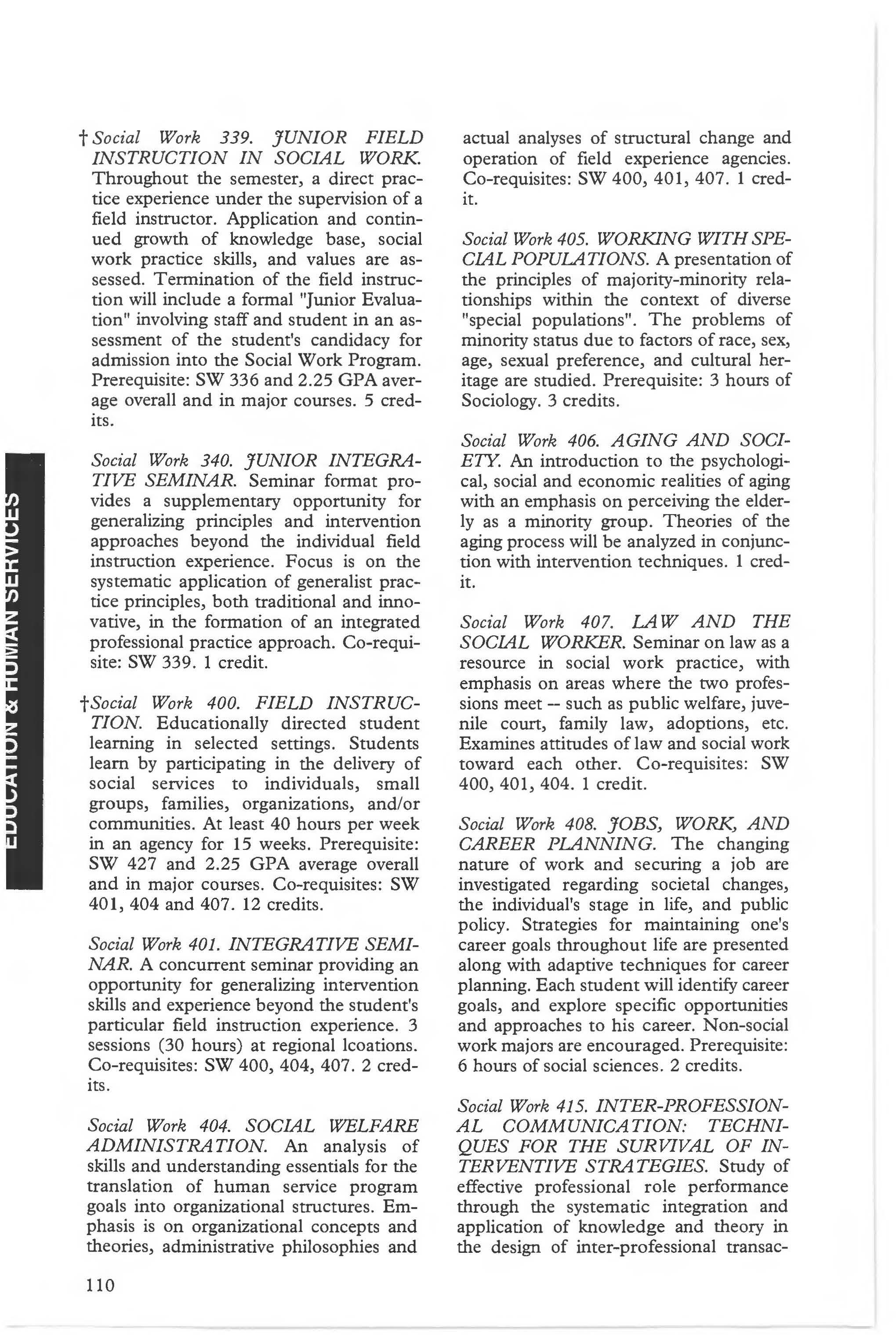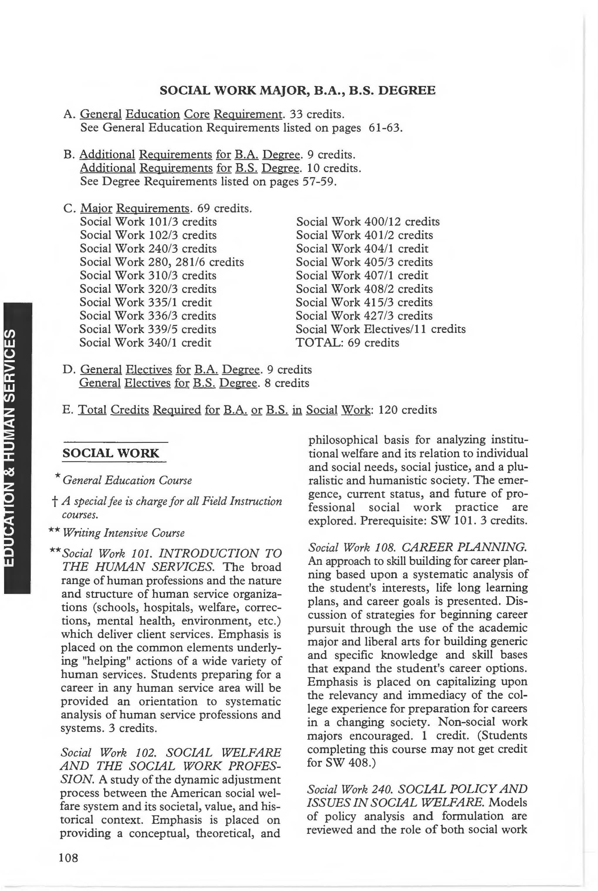 Education, Special Education, and Social Work, Dept. of . . . ...... . 94 Elementary Education Program 96-97 Professional Semester ..... ... . . . .97