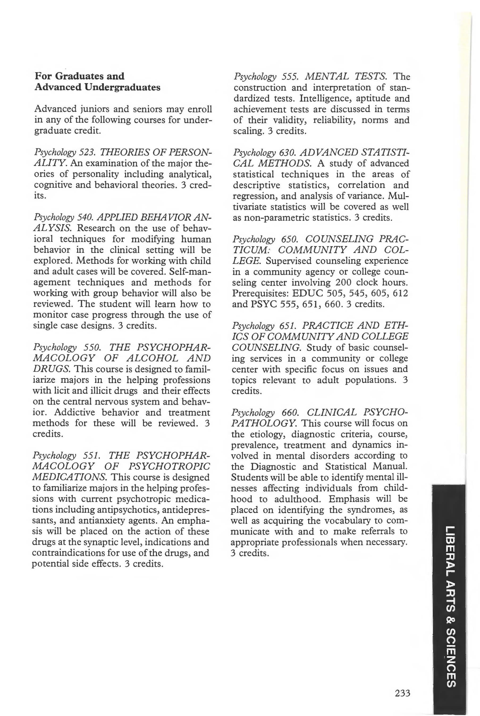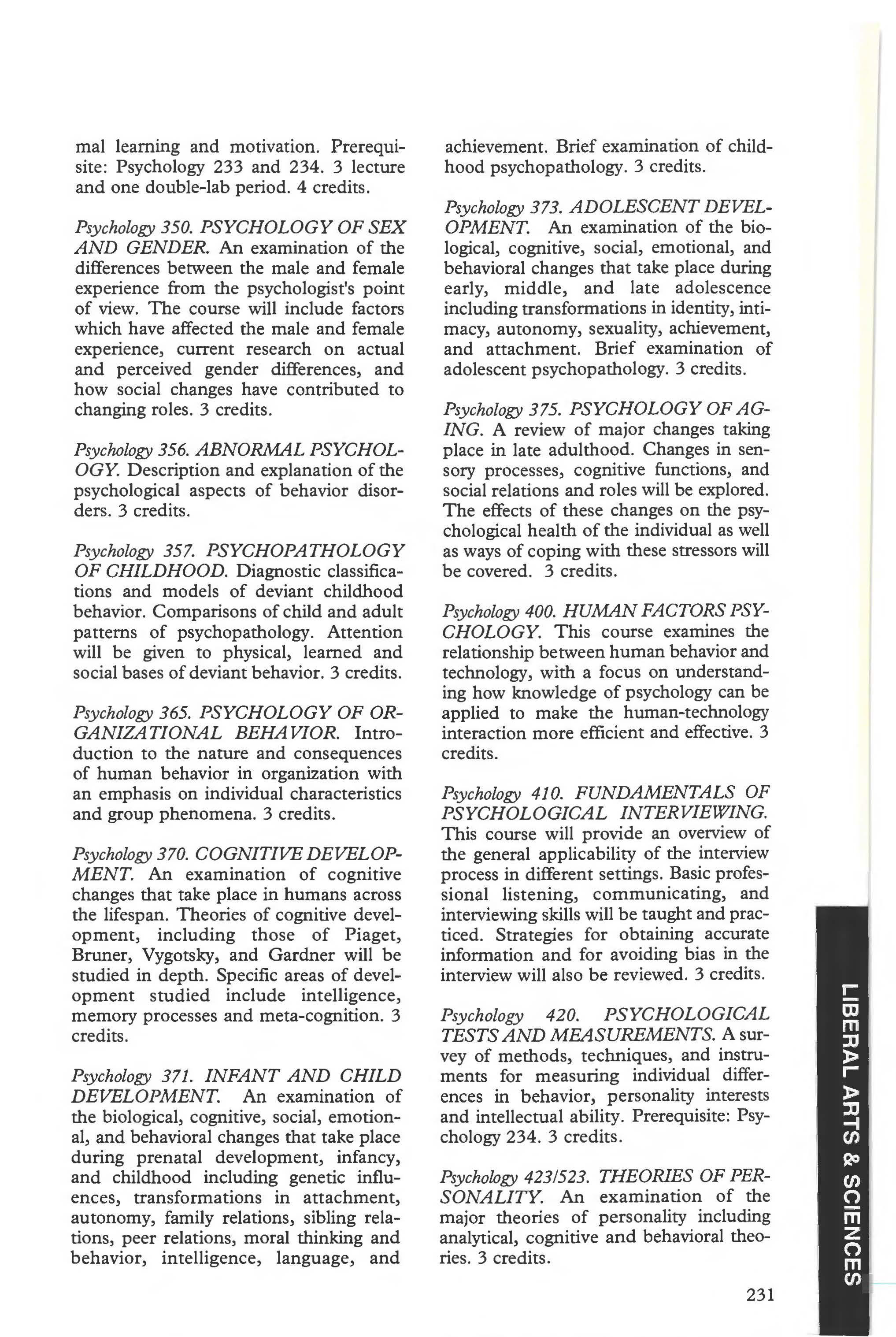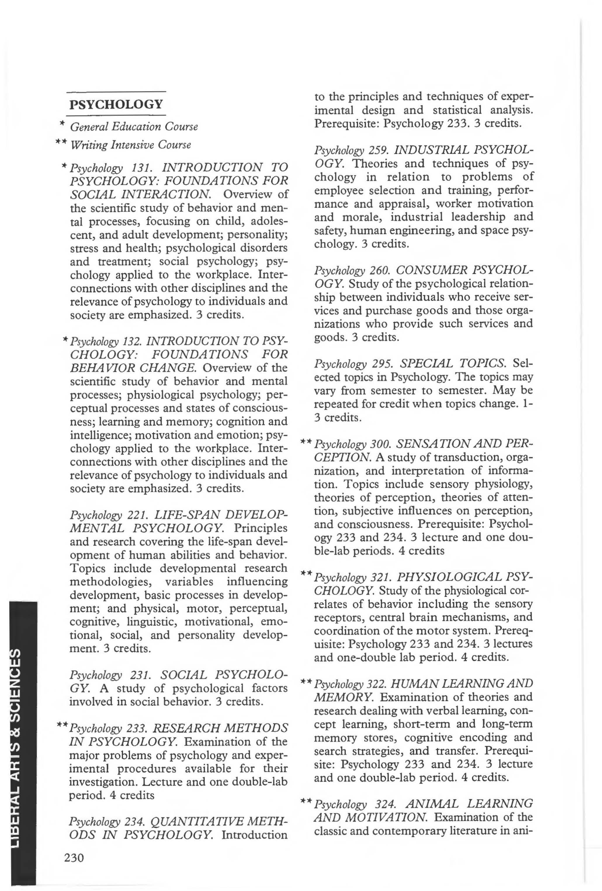 Psychology Courses 230-233 Psychology, Dept. of .. .. ....... . 228